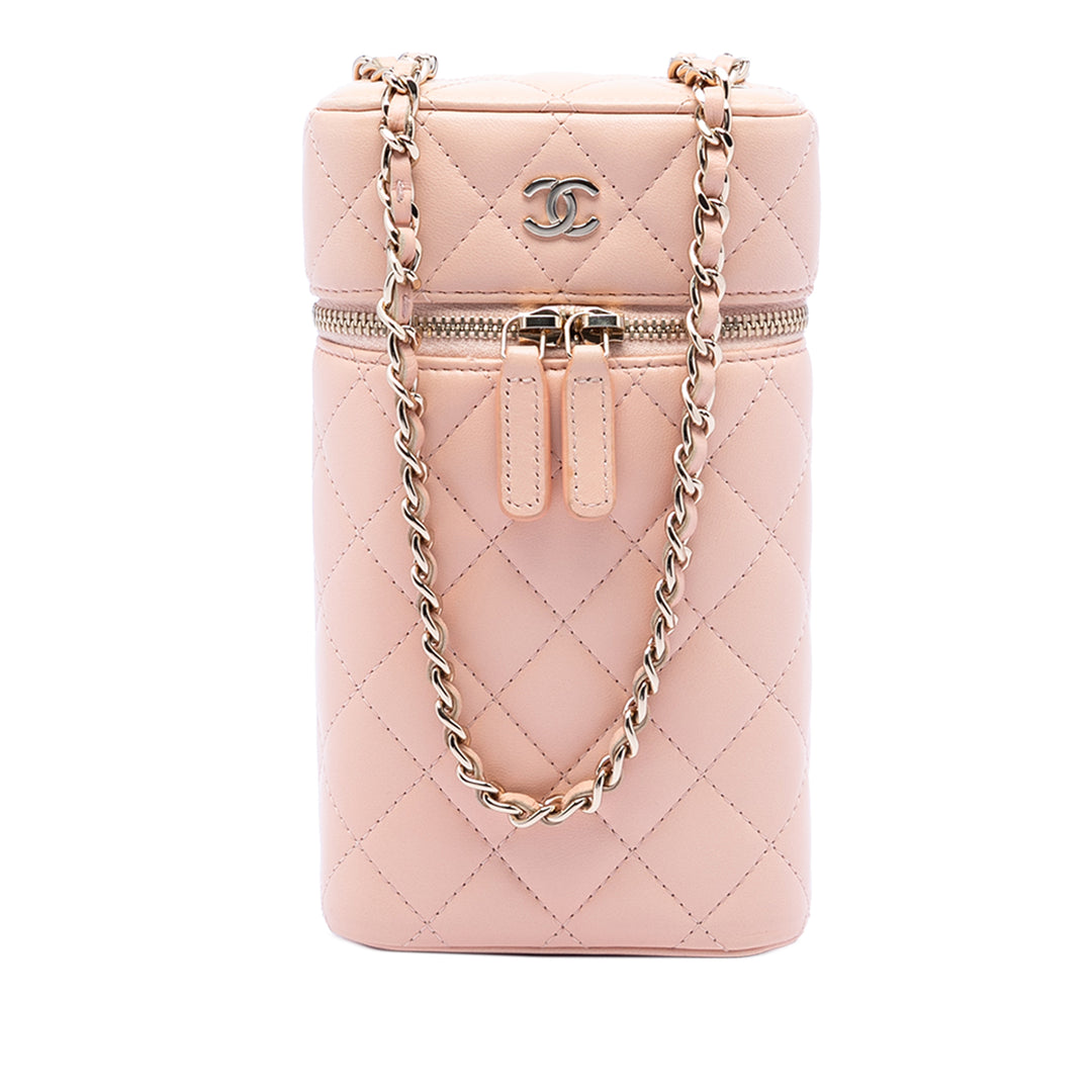 Chanel CC Matelassé Cuir d’agneau Phone Holder avec chaîne