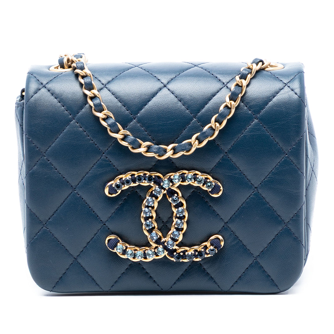 Chanel Mini Matelassé Cuir d’agneau CC Cristal Rabat intégral