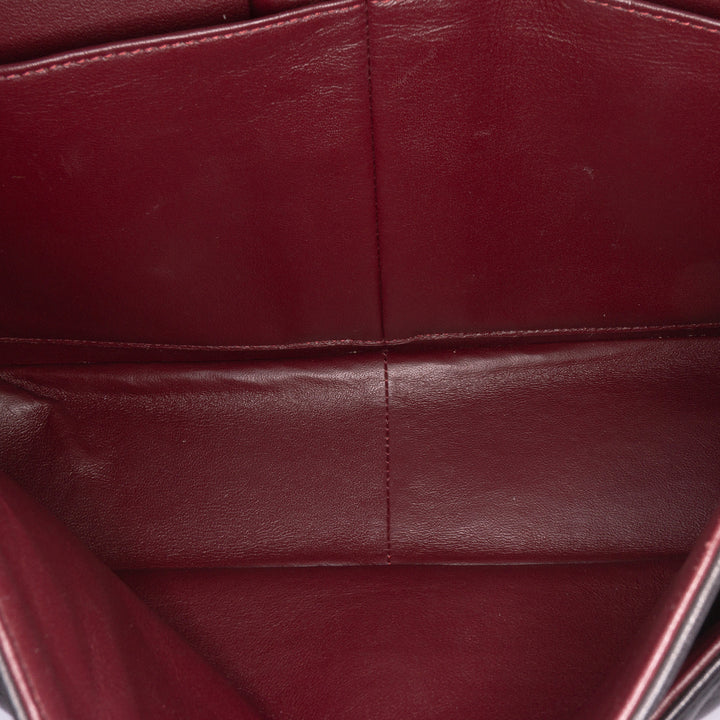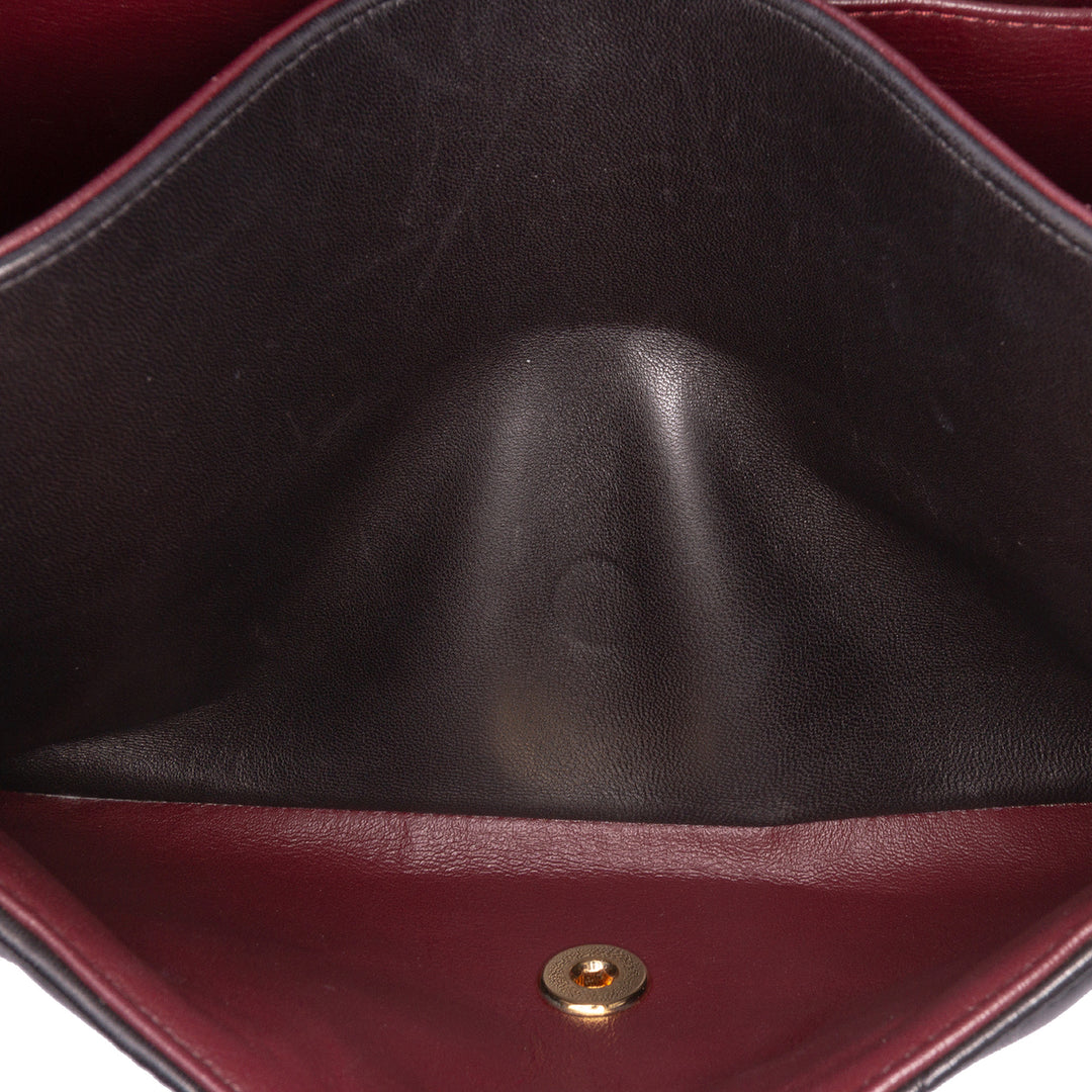 Ce sac bandoulière est doté d'un corps en cuir d'agneau matelassé, de bandoulières en cuir tressé, d'un double rabat avant avec fermoir à tourniquet CC, d'une poche extérieure plaquée au dos et de poches intérieures zippées et plaquées. Il est en bon état.