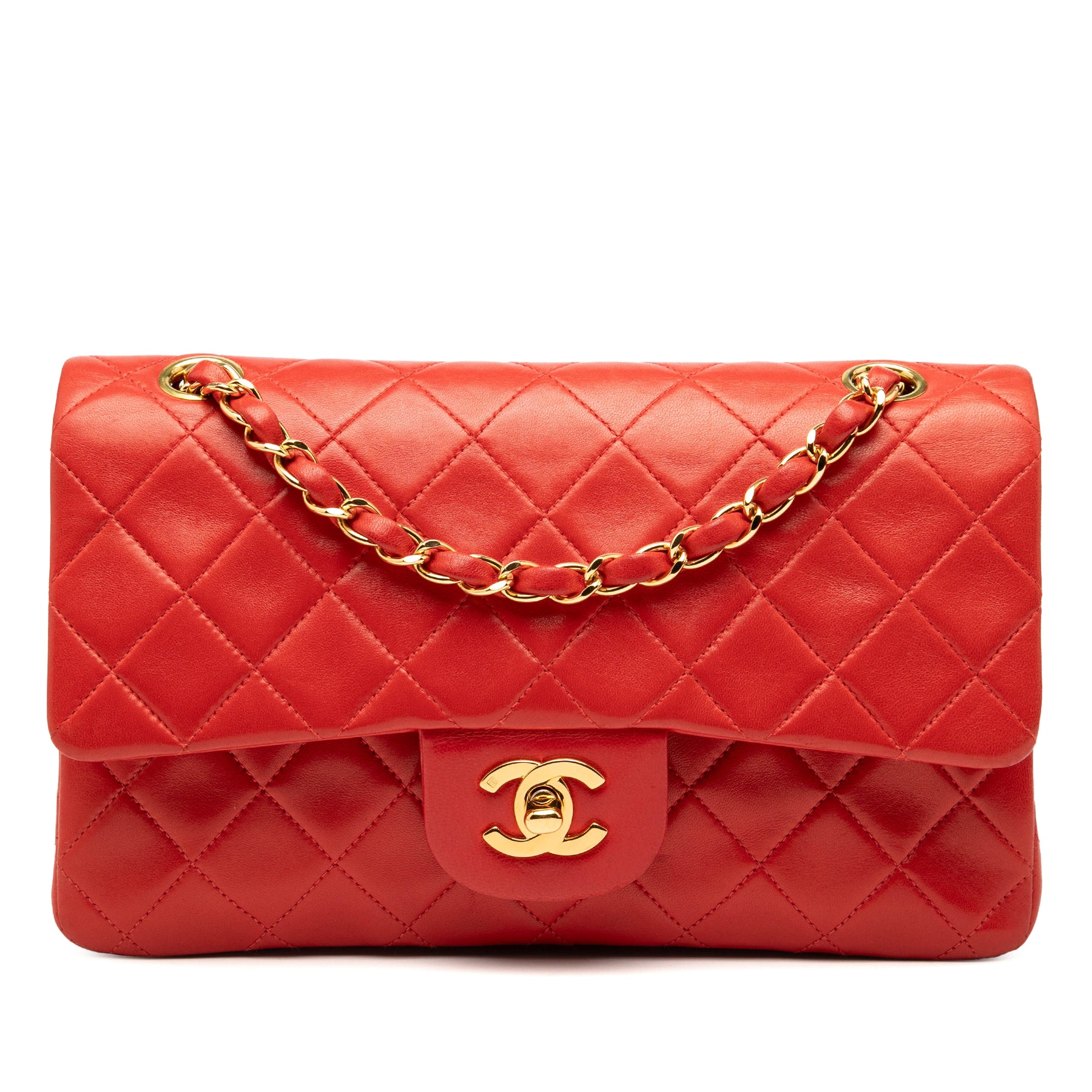 Ce sac bandoulière est doté d'un corps en cuir d'agneau matelassé, de bandoulières en cuir doré tressé, d'un double rabat avant avec des C entrelacés et d'un fermoir à vis, d'une poche extérieure plaquée au dos et de poches intérieures zippées et plaquées. Il est en bon état.
