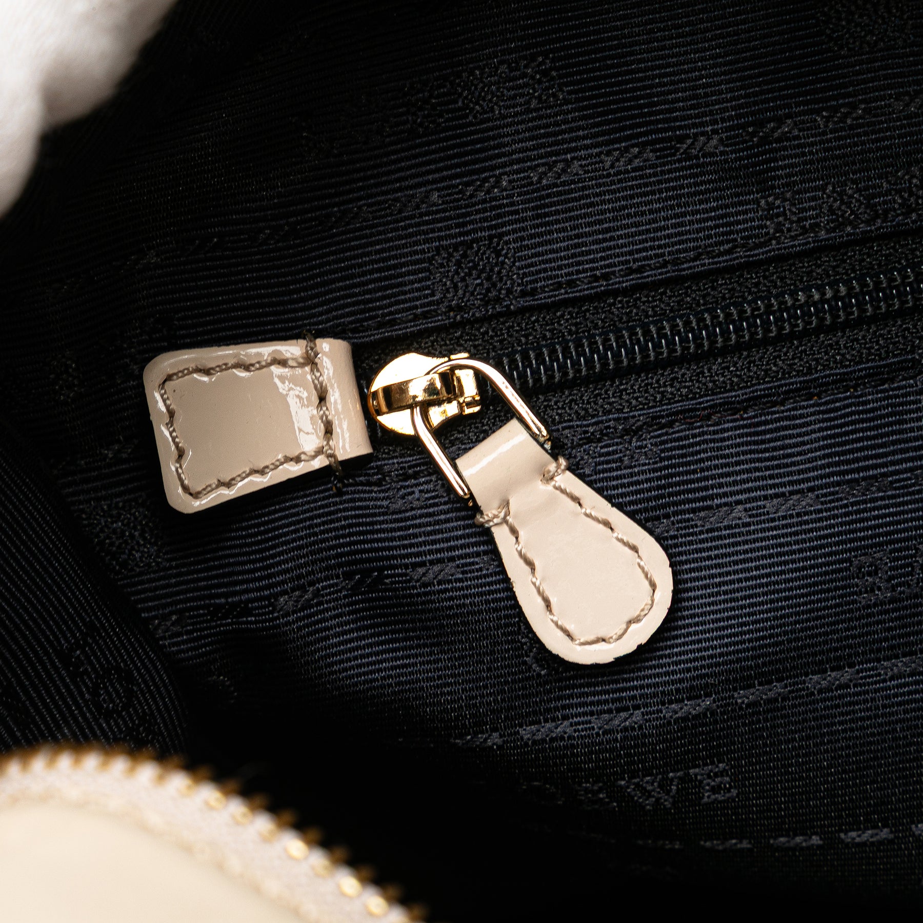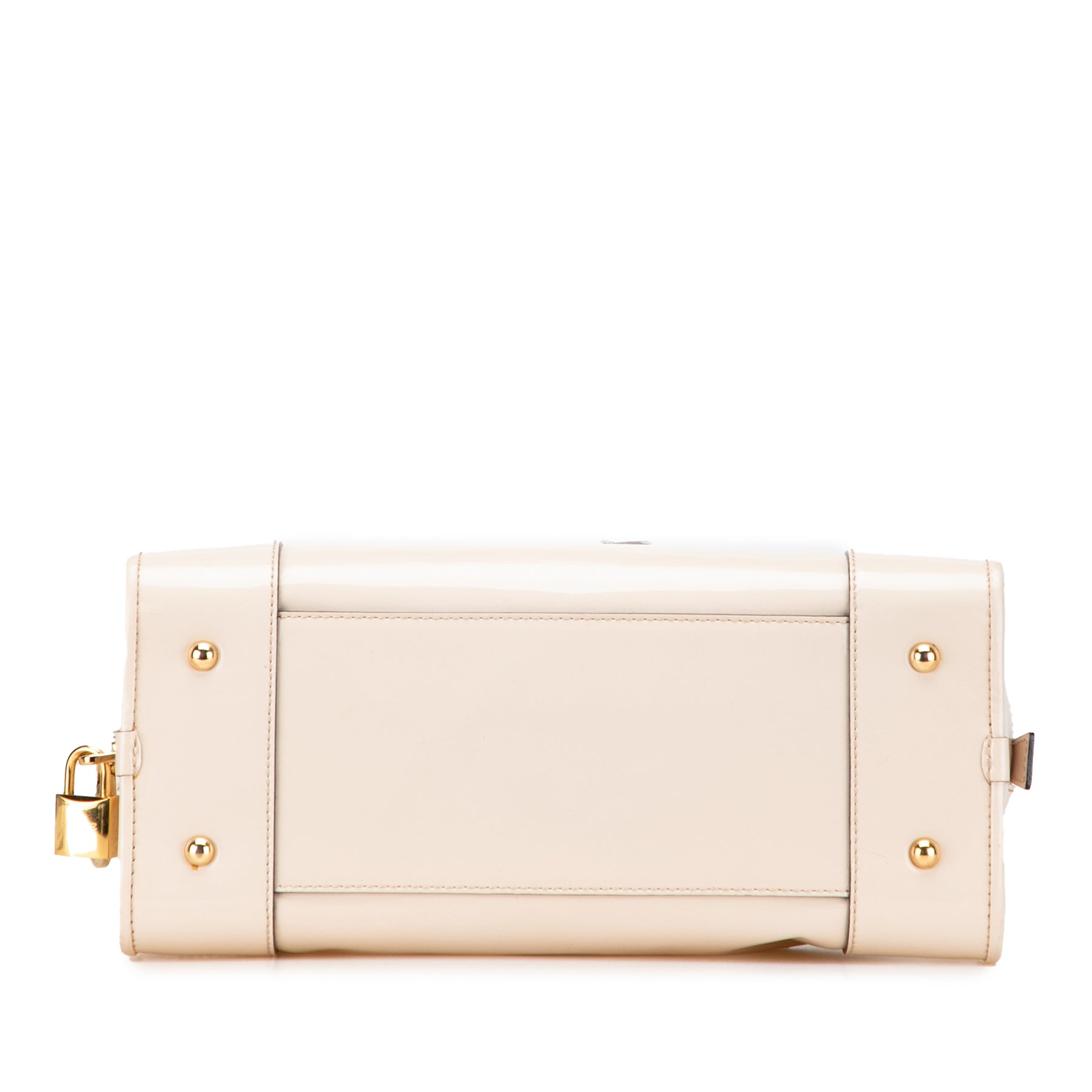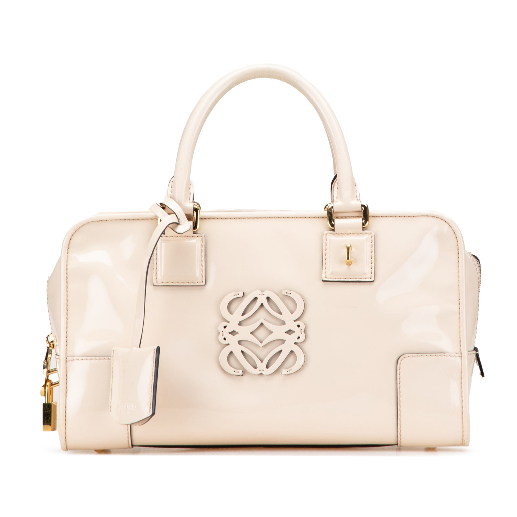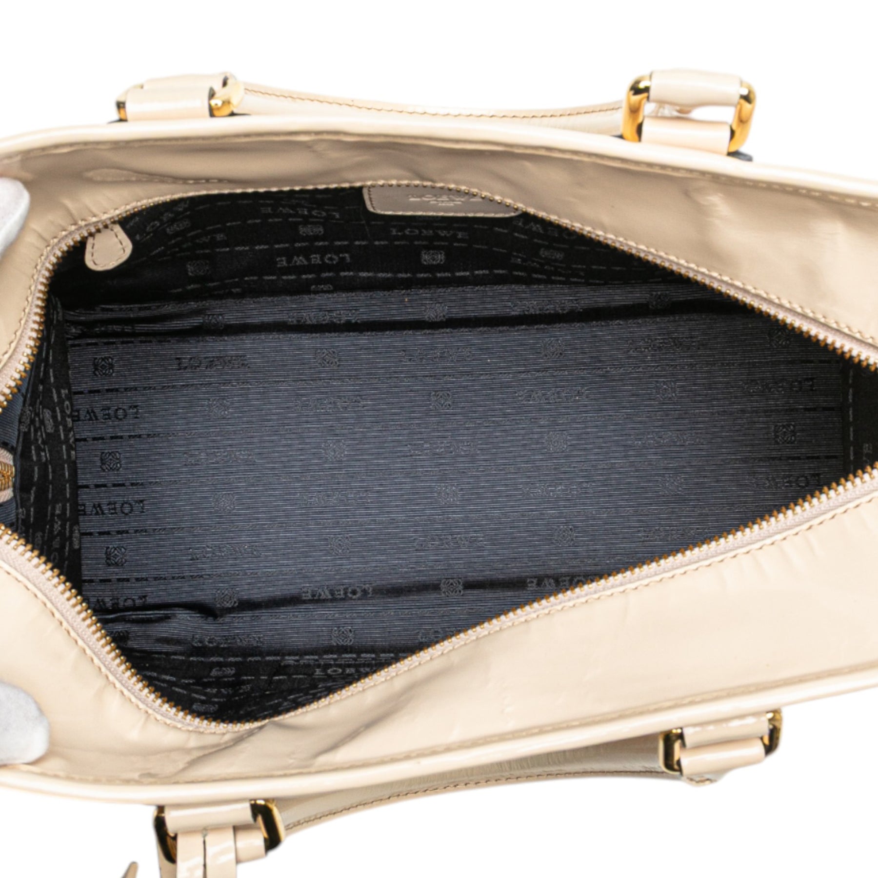 L'Amazona 28 est doté d'un corps en cuir verni, de poignées en cuir roulé, d'une fermeture zippée sur le dessus et de poches intérieures zippées et plaquées. Il est en bon état.