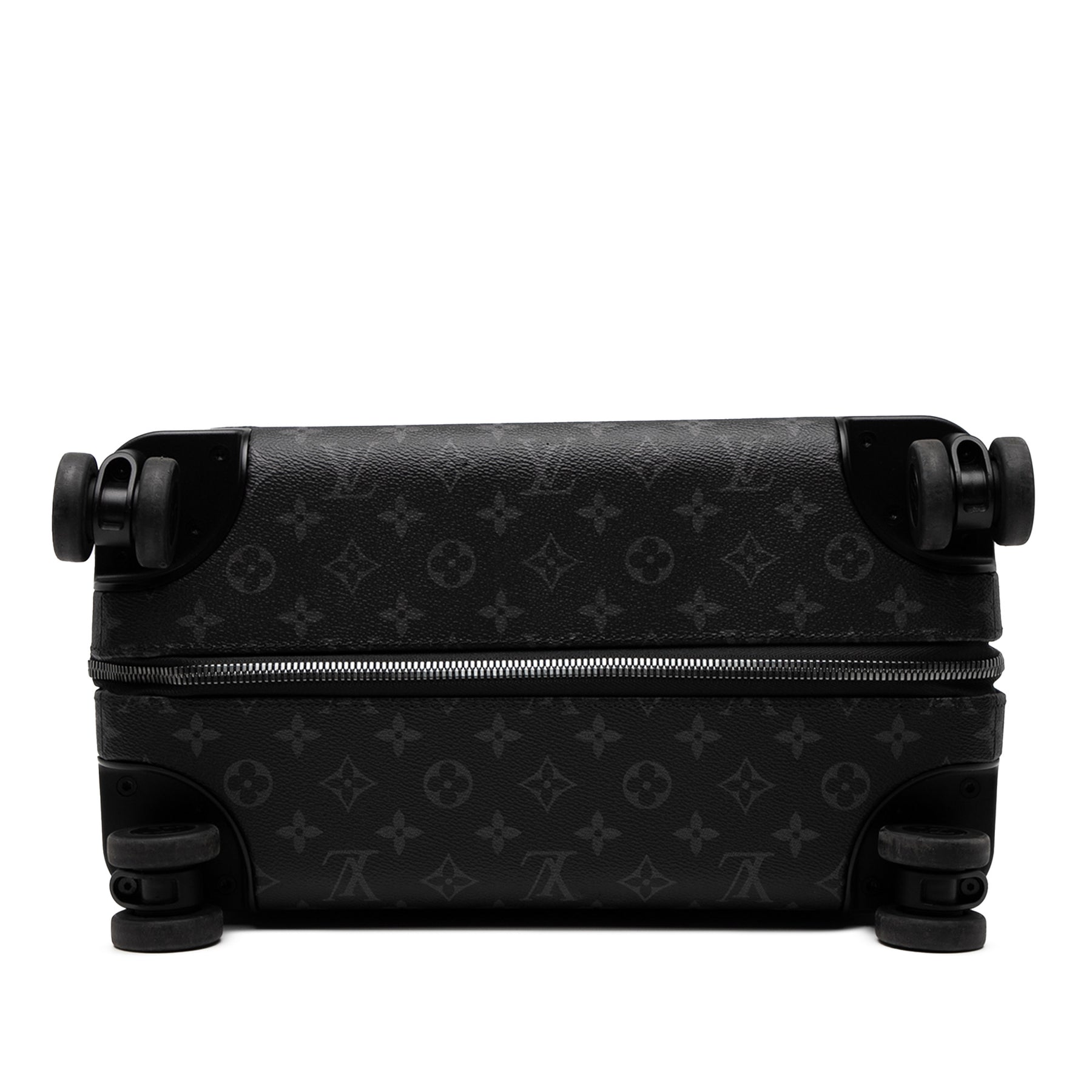 Le sac Horizon 55 est doté d'une structure en toile monogrammée avec des finitions en cuir, d'une poignée rétractable, de roulettes pivotantes, de poignées plates en cuir sur le dessus et sur les côtés, d'une fermeture éclair et de compartiments intérieurs zippés. Il est en bon état.