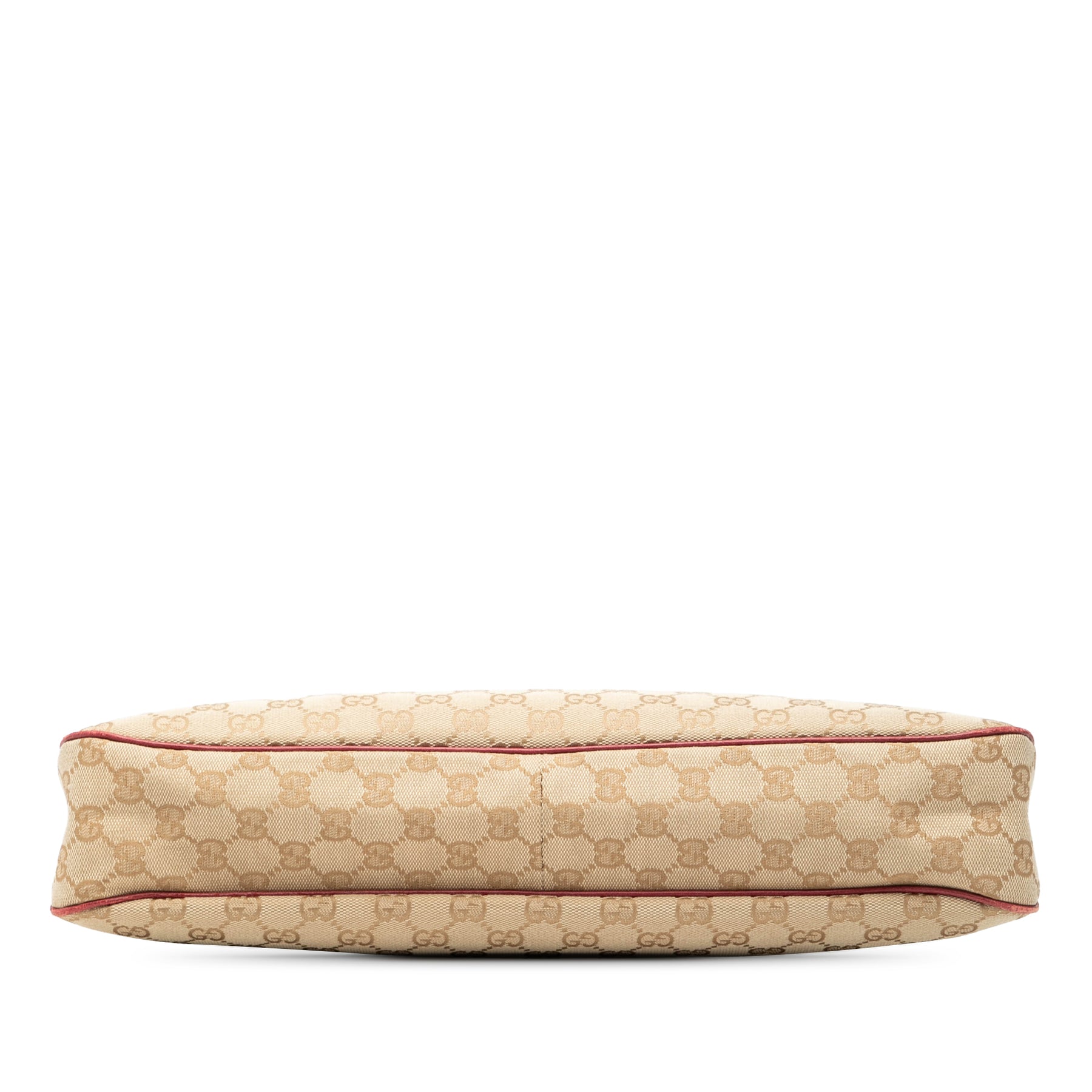 Ce sac bandoulière est en toile avec finitions en cuir, des anses plates en cuir, une ouverture sur le dessus avec fermeture magnétique, une poche extérieure plaquée à l'avant et des poches intérieures zippées et plaquées. Il est en bon état.