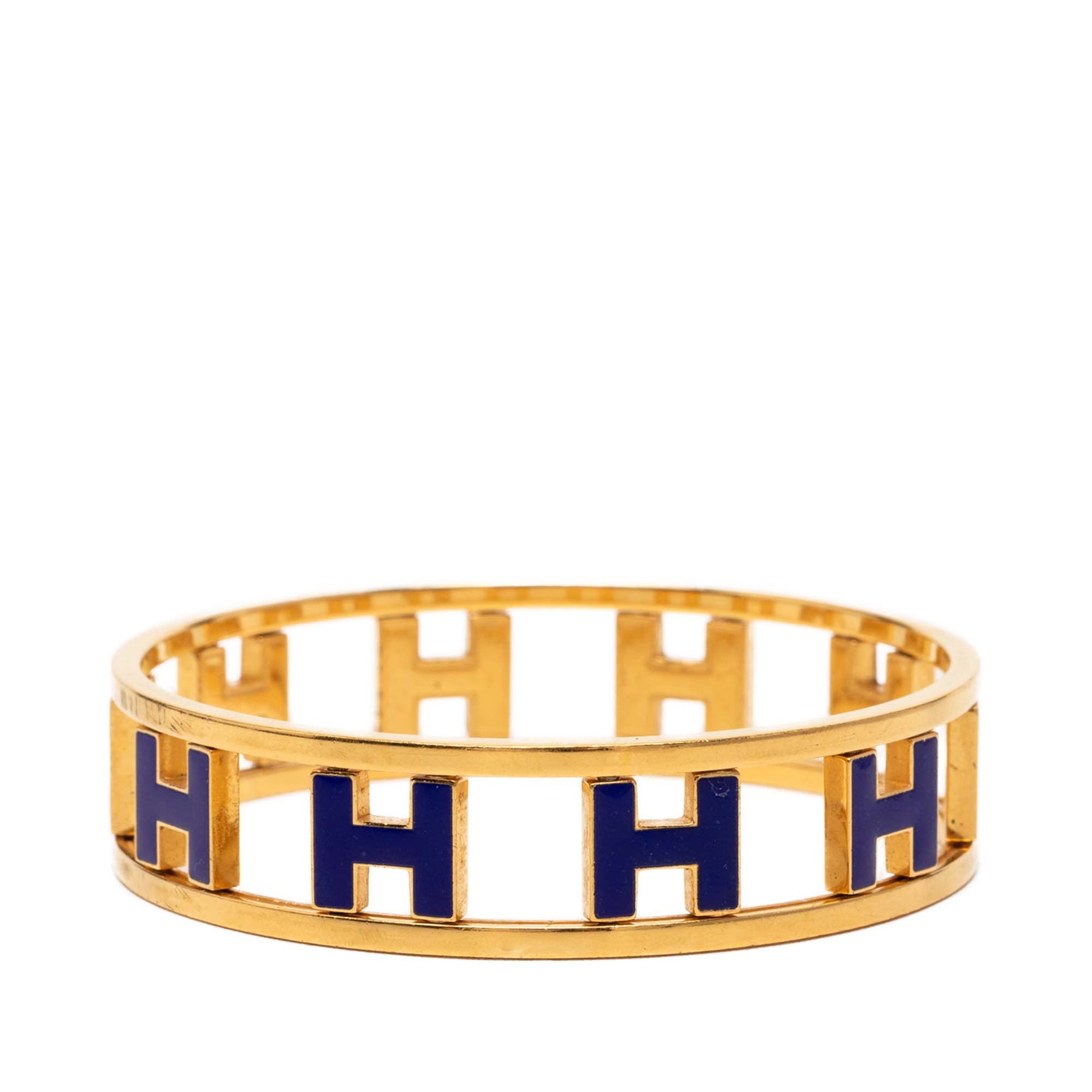 Ce bracelet est en métal plaqué or et émaillé. Il est en bon état.