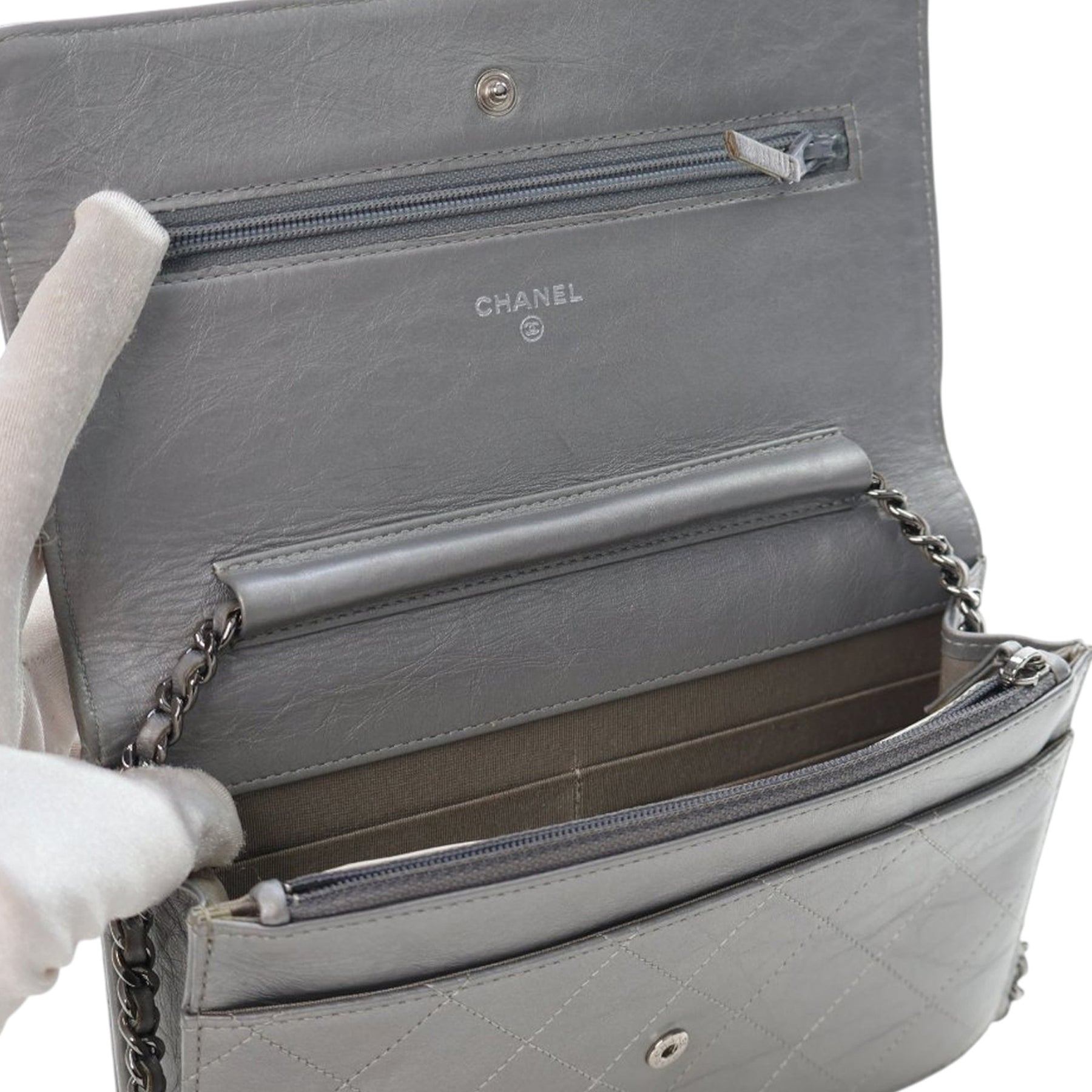 Chanel CC Quilted Aged Cuir de veau Wallet On Chain Argenté