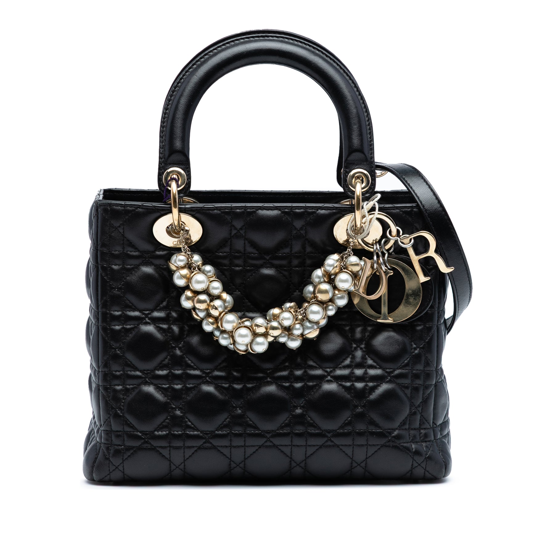 Dior Medium Cuir d’agneau Cannage Pearl Lady Dior Noir