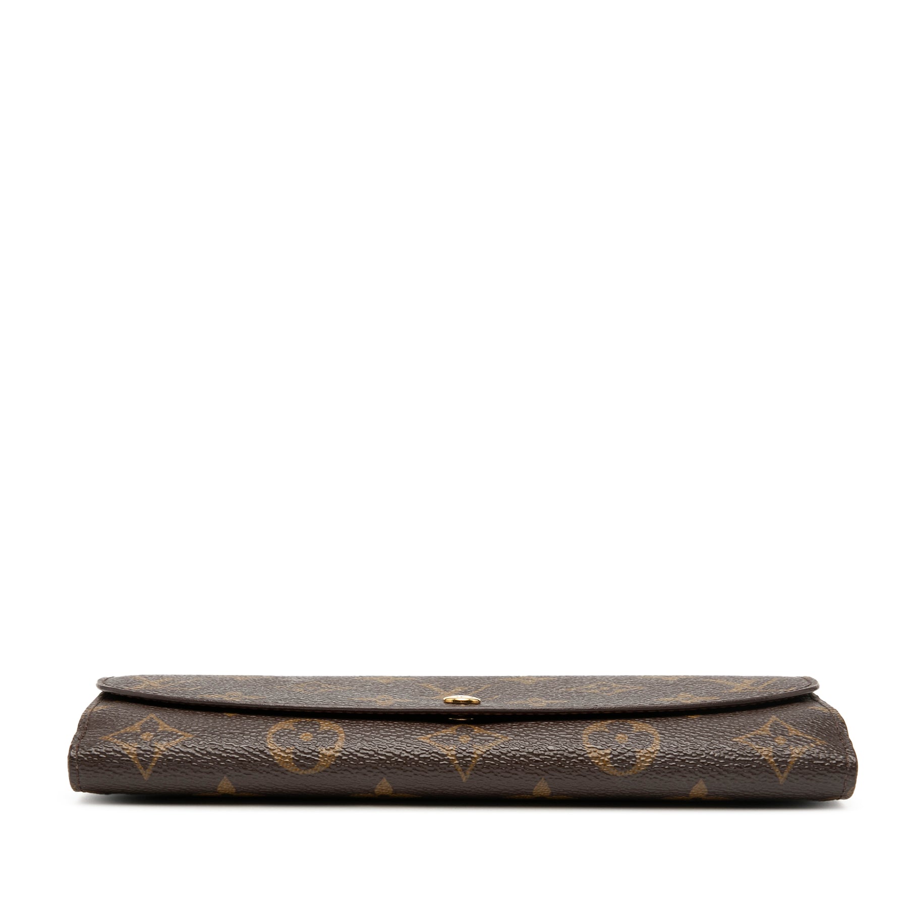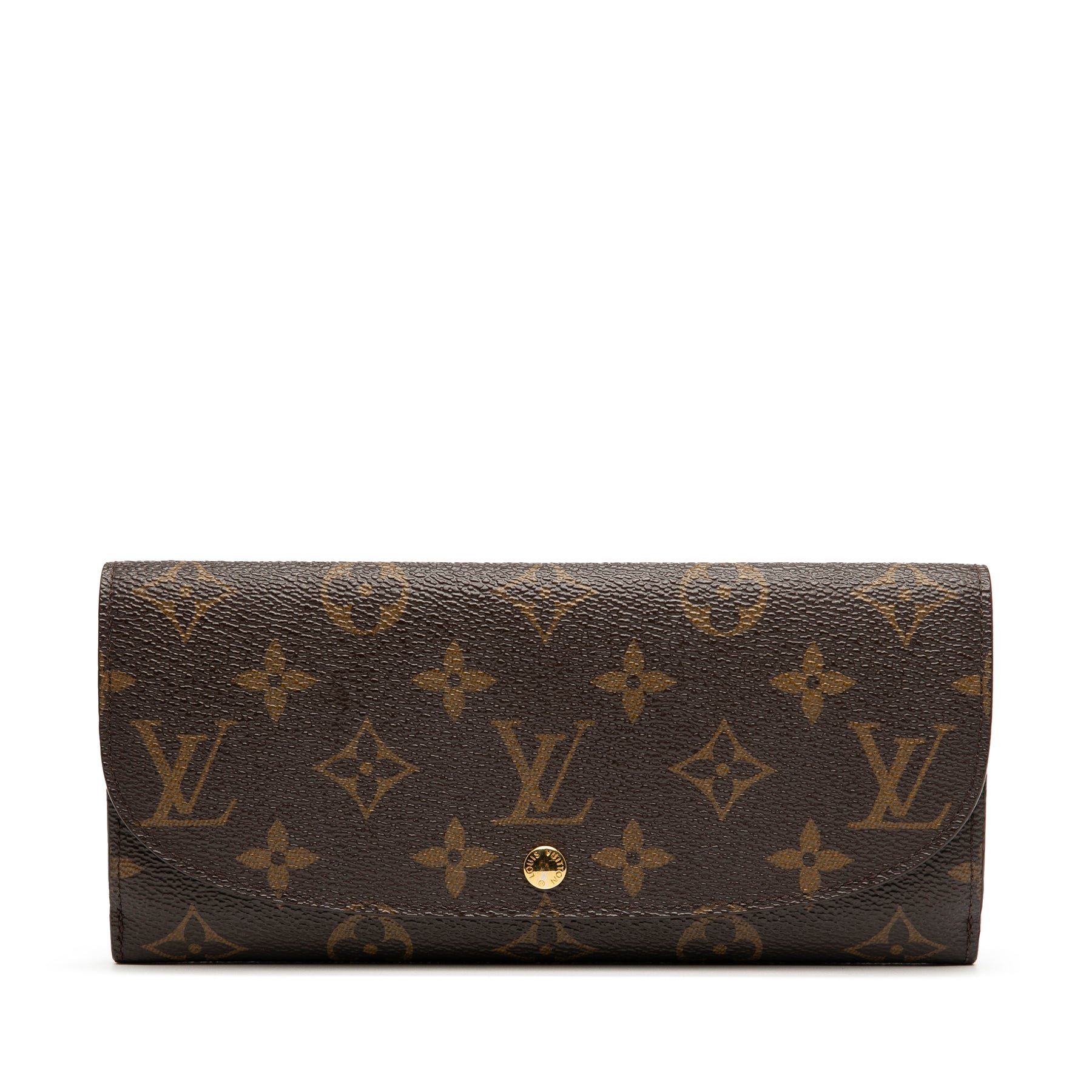 Le portefeuille Louise est en toile Monogram, doté de rabats avant et arrière à boutons-pression et de poches intérieures. Il est en bon état.