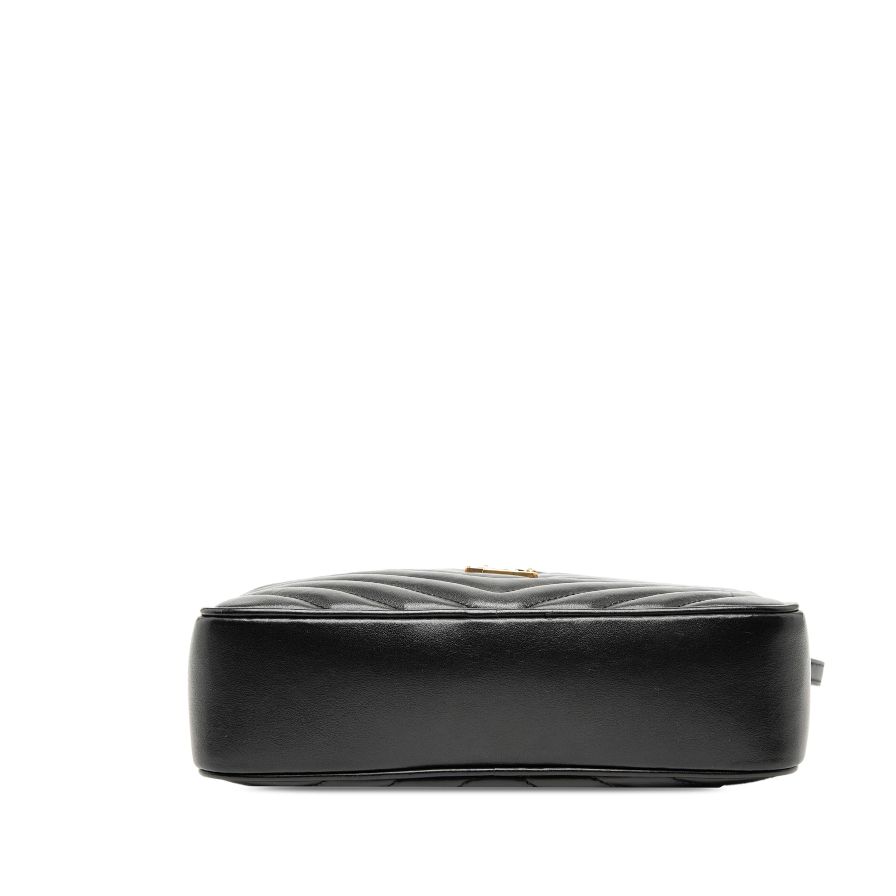 Le sac photo Lou est en cuir matelassé, possède une bandoulière plate en cuir, une fermeture zippée sur le dessus et une poche intérieure plaquée. Il est en bon état.