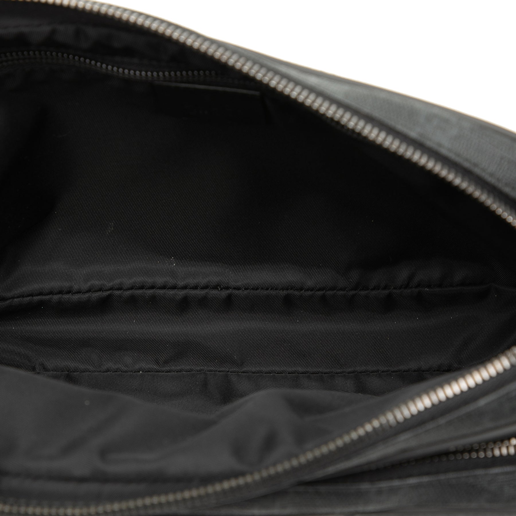 Cette pochette est confectionnée en toile enduite avec des finitions en cuir, une dragonne plate amovible en cuir, une fermeture zippée sur le dessus, un compartiment extérieur à l'avant et des poches intérieures zippées et plaquées. Elle est en excellent état.