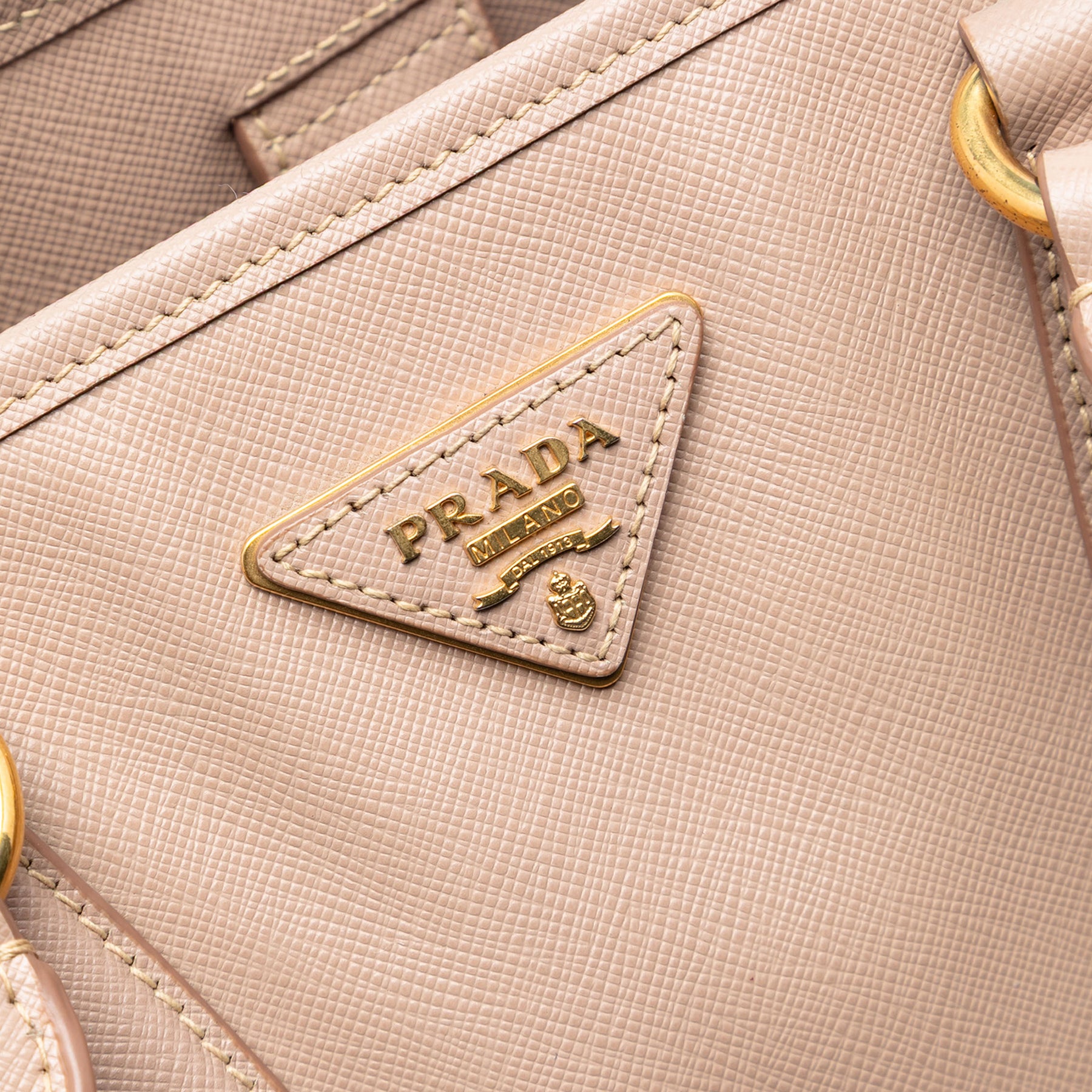 Ce sac à main est en cuir saffiano, possède des anses roulées en cuir, une bandoulière plate amovible, une ouverture sur le dessus avec fermeture magnétique, ainsi que des poches intérieures zippées et plaquées. Il est en bon état.