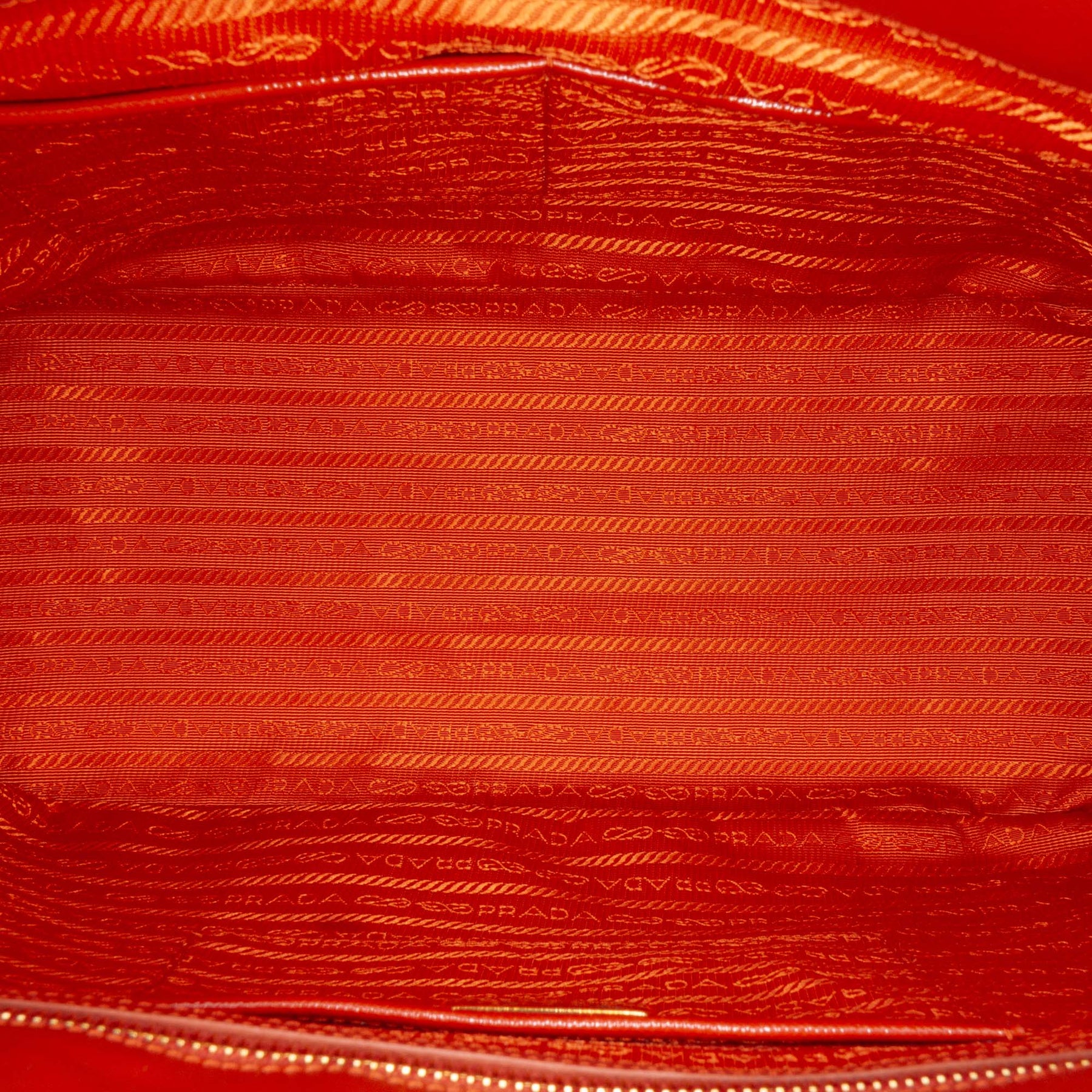Le sac Galleria est confectionné en cuir saffiano et possède des anses roulées, une bandoulière plate amovible, une ouverture sur le dessus avec fermeture magnétique, deux compartiments zippés et des poches intérieures zippées et plaquées. Les anses ont été repeintes. Il est en bon état.