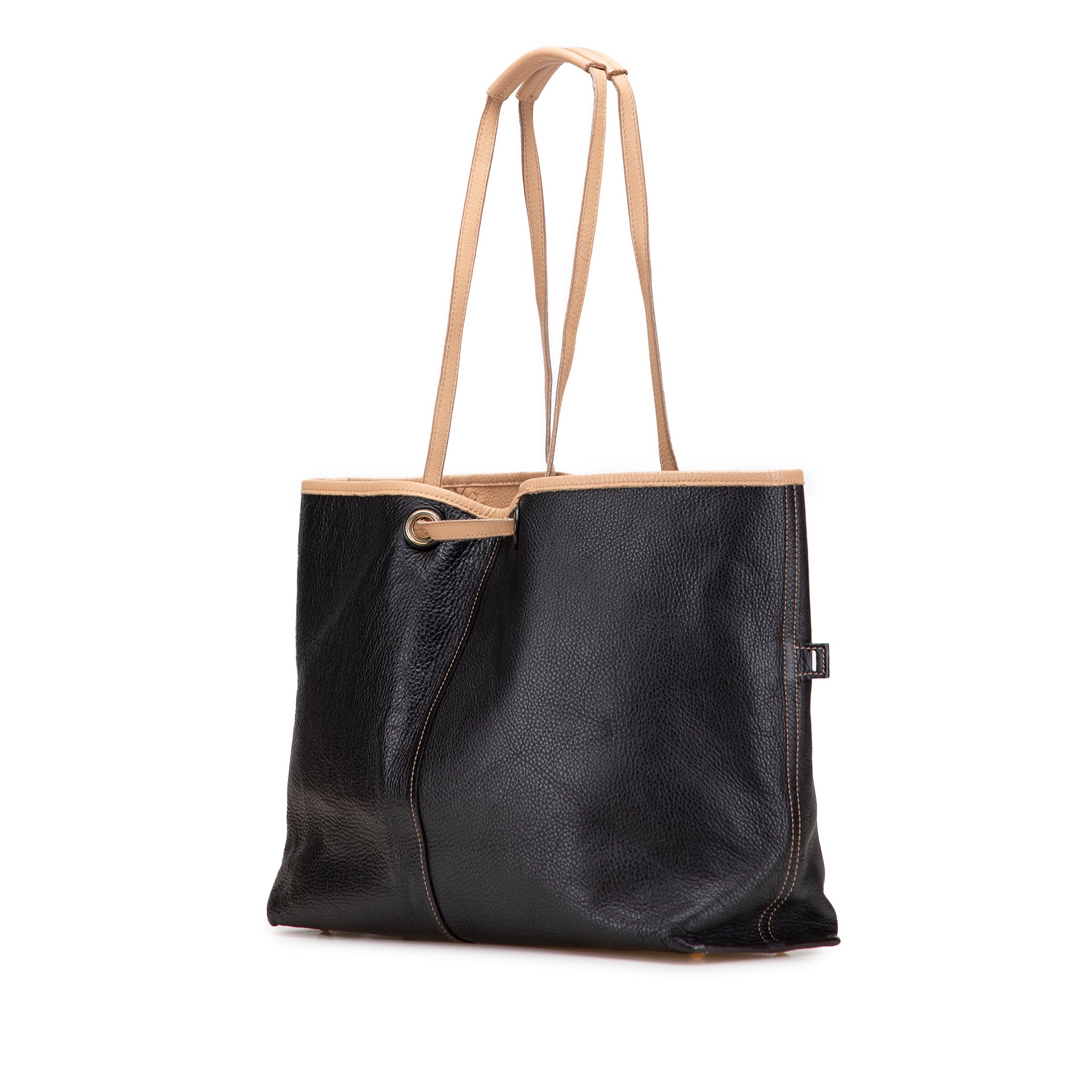 Le sac Neo Double Tote est doté d'un corps réversible en cuir, de bandoulières plates en cuir, d'une ouverture sur le dessus et d'une pochette intérieure zippée. Il est en bon état.