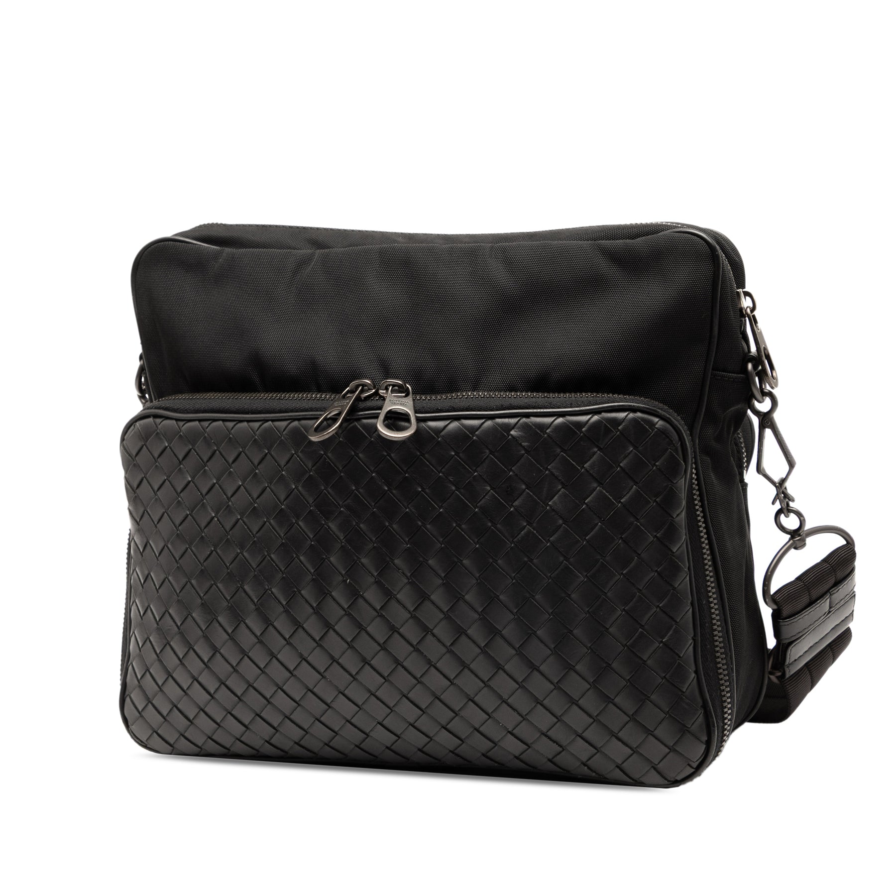 Bottega Veneta Nappa Intrecciato Trimmed Toile Messenger Bag Noir