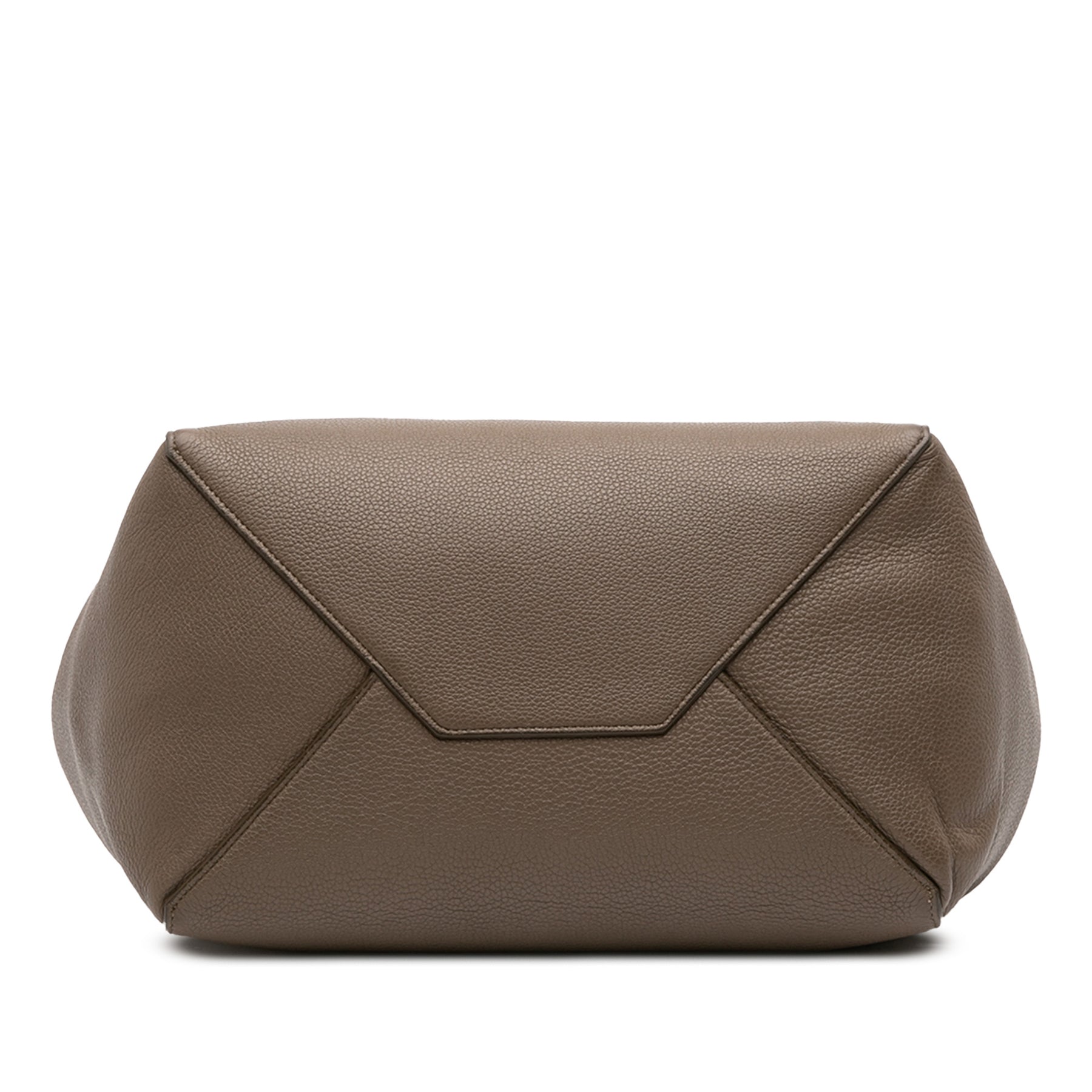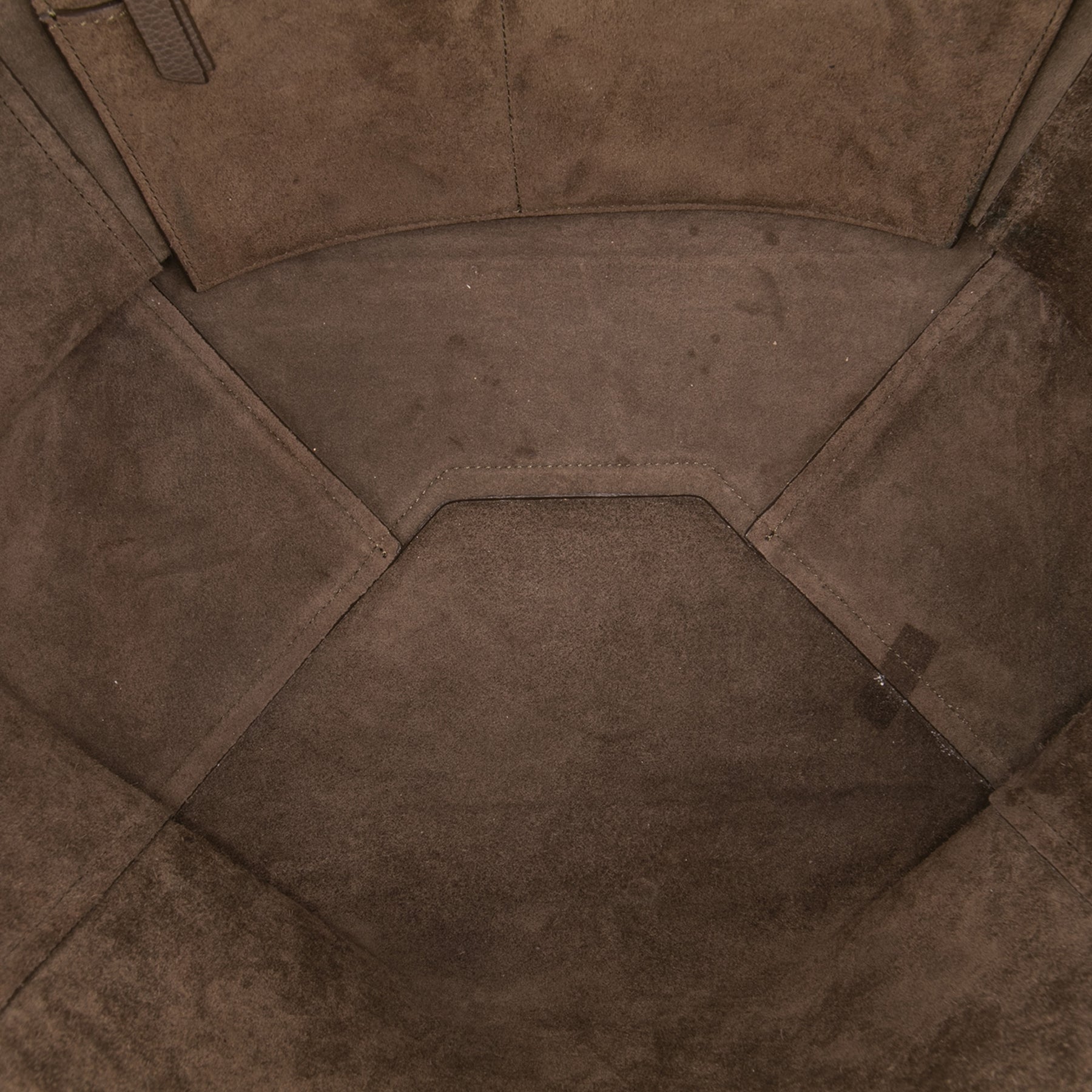 Le sac Phantom Cabas est en cuir, avec des anses plates en cuir, une ouverture sur le dessus fermée par un cordon plat en cuir et des poches intérieures zippées. Les coins ont été repeints. Il est en bon état.