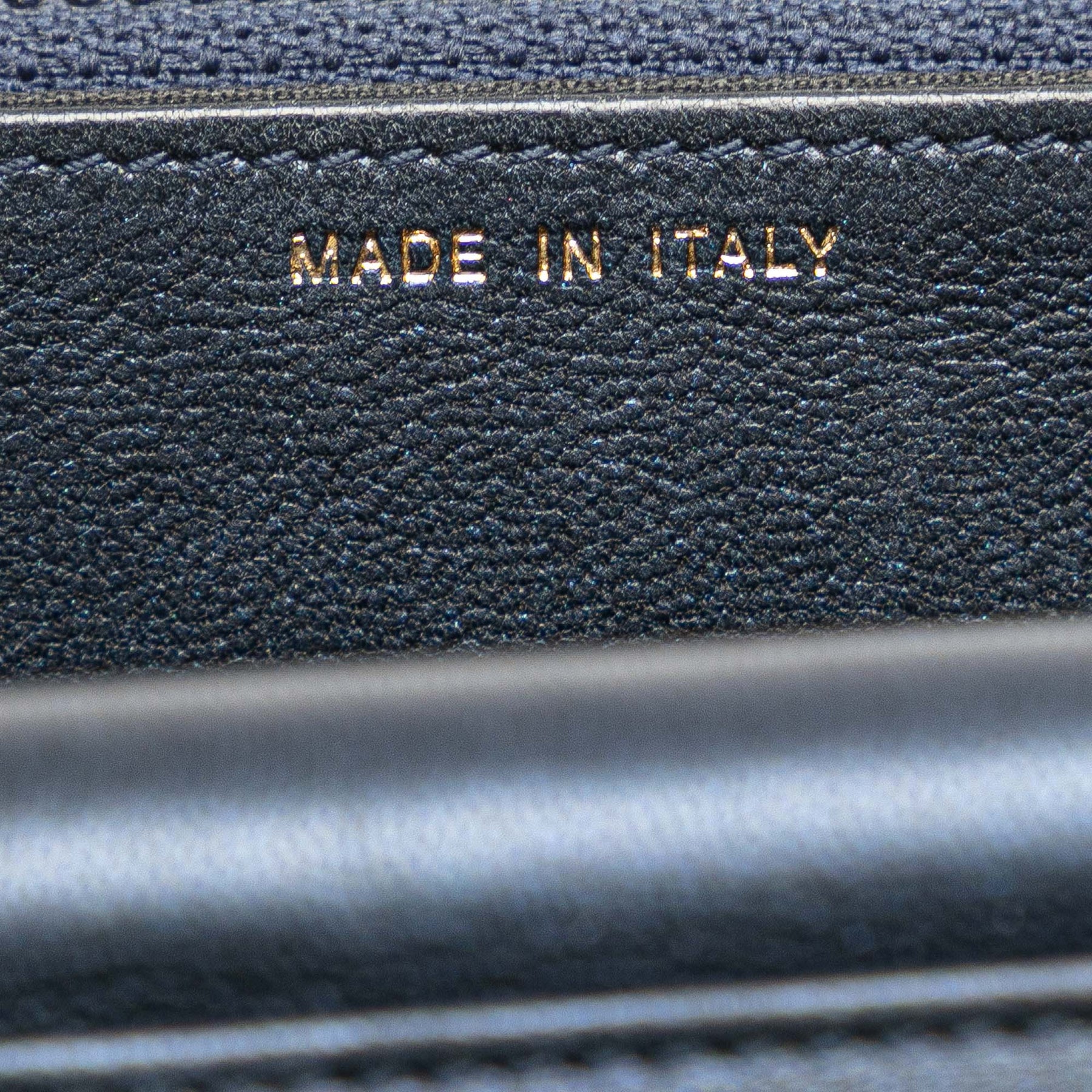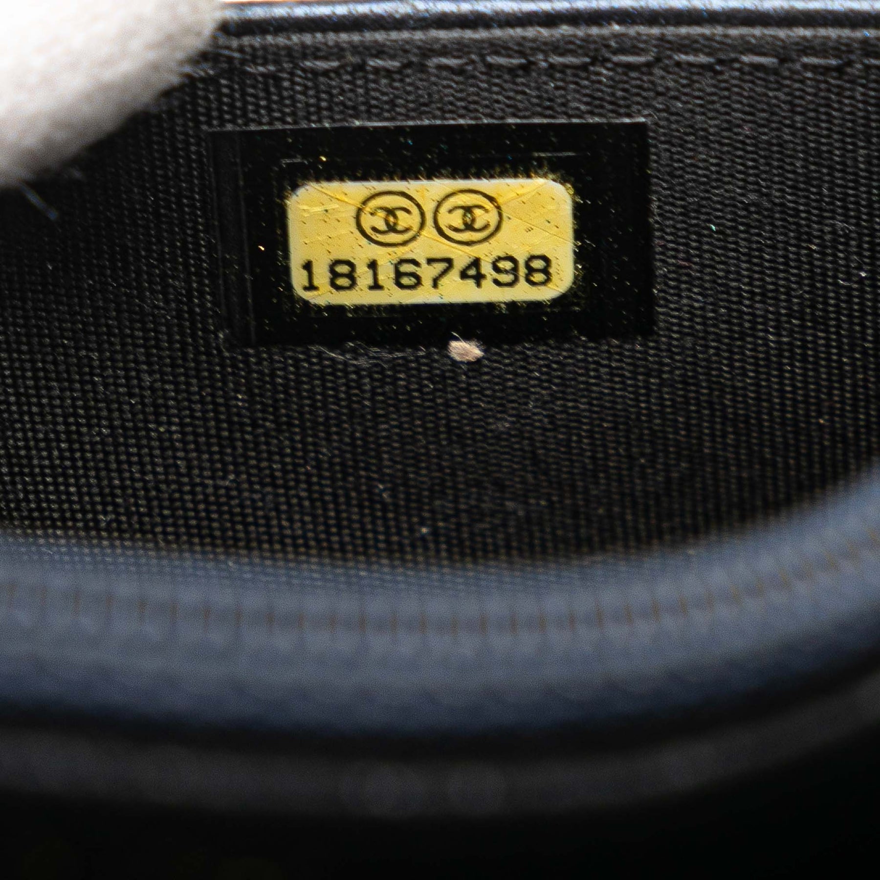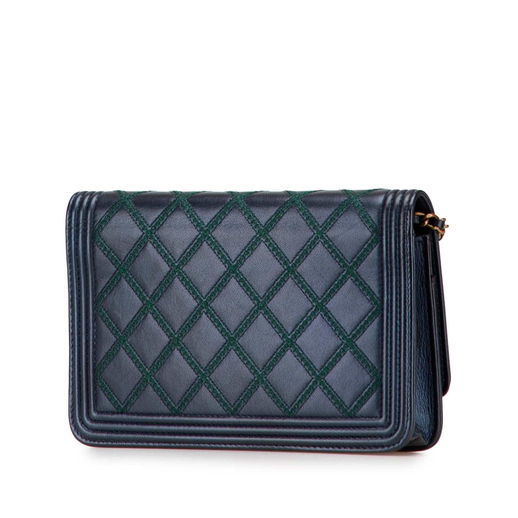 Le portefeuille Boy à chaîne est doté d'un corps en cuir de veau surpiqué, d'une bandoulière en cuir tressé, d'un rabat avant avec fermeture à poussoir et de poches intérieures zippées et plaquées. Il est en bon état.