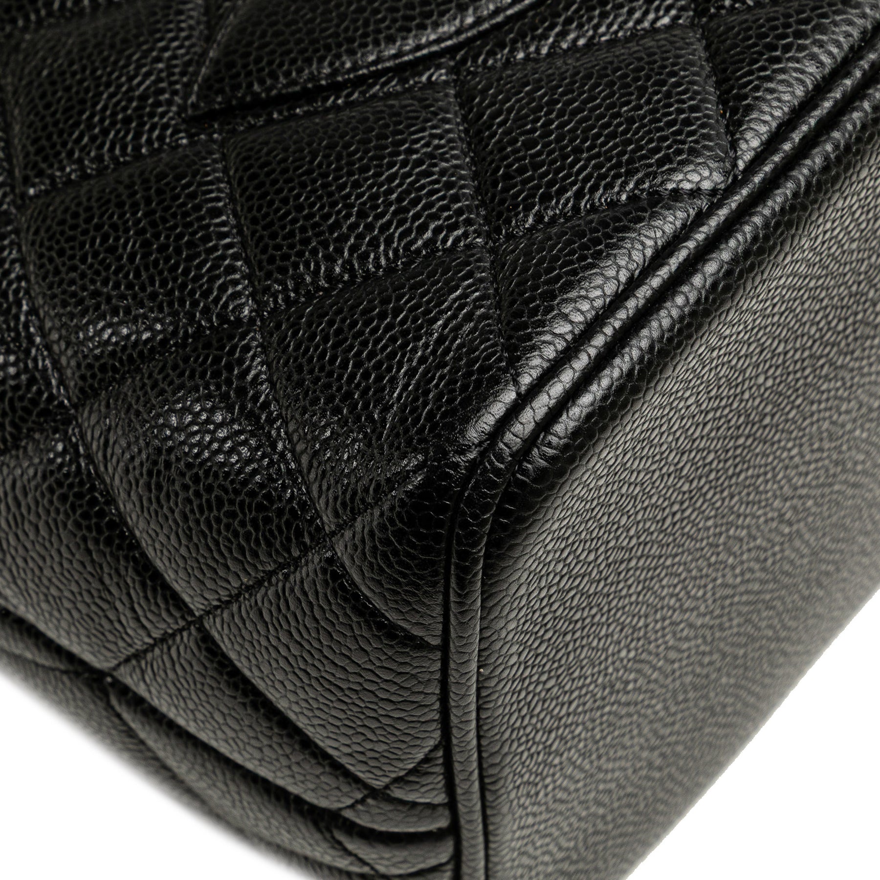 Le sac cabas Medallion est confectionné en cuir caviar matelassé et possède des anses roulées en cuir, une fermeture zippée sur le dessus, une poche plaquée extérieure au dos, ainsi que des poches intérieures zippées et plaquées. Il est en bon état.