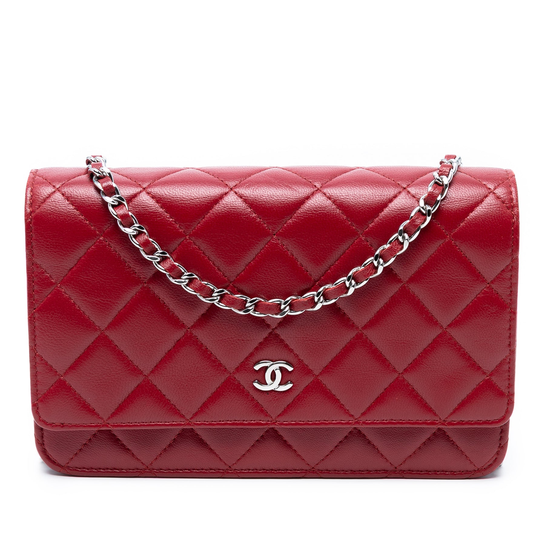 Chanel CC Quilted Cuir d’agneau Wallet on Chain Rouge