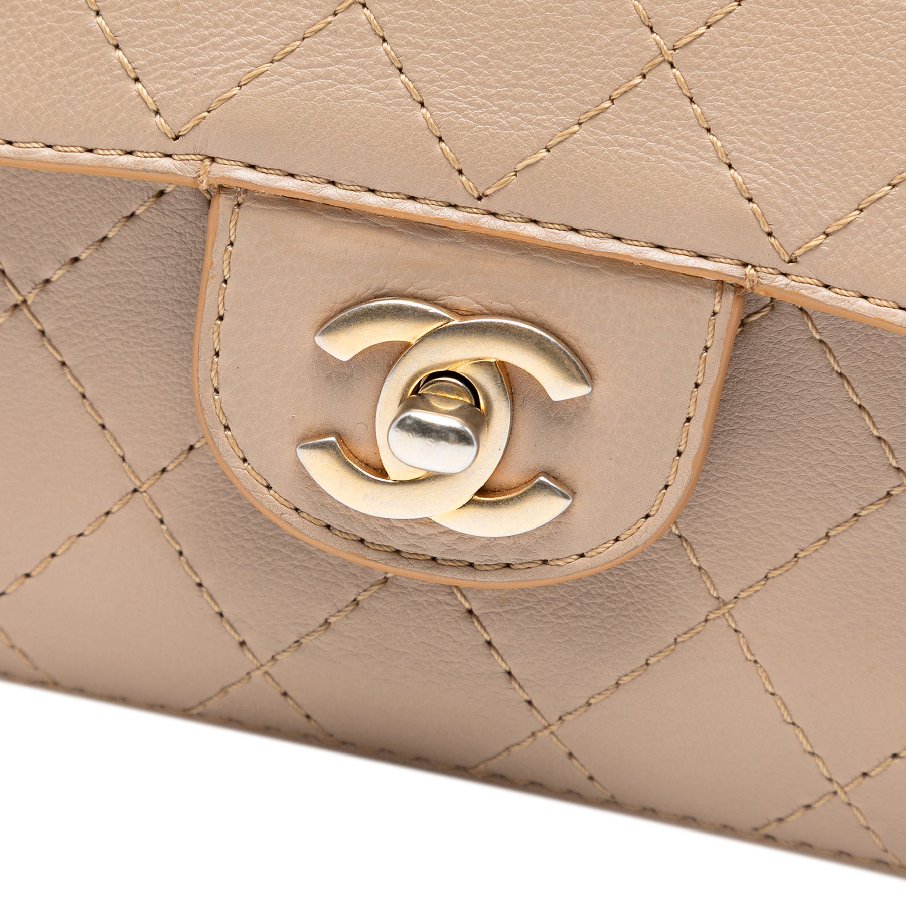 Chanel Medium Classic Cuir de veau Wild Stitch Double rabat Marron