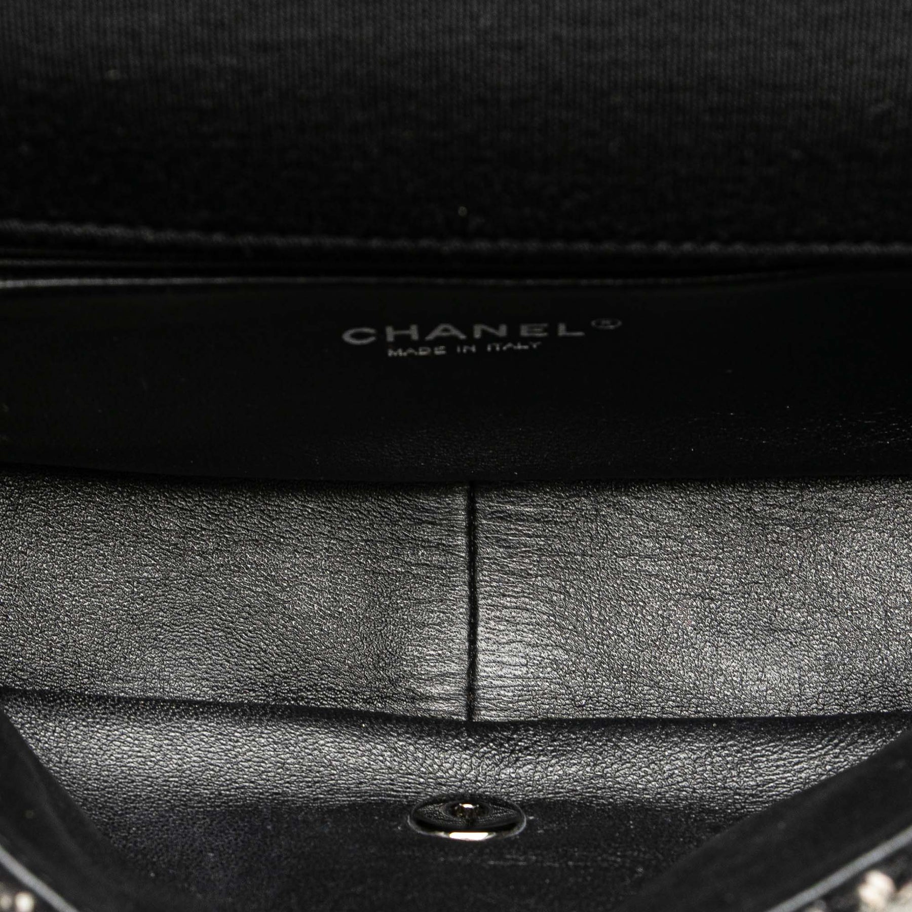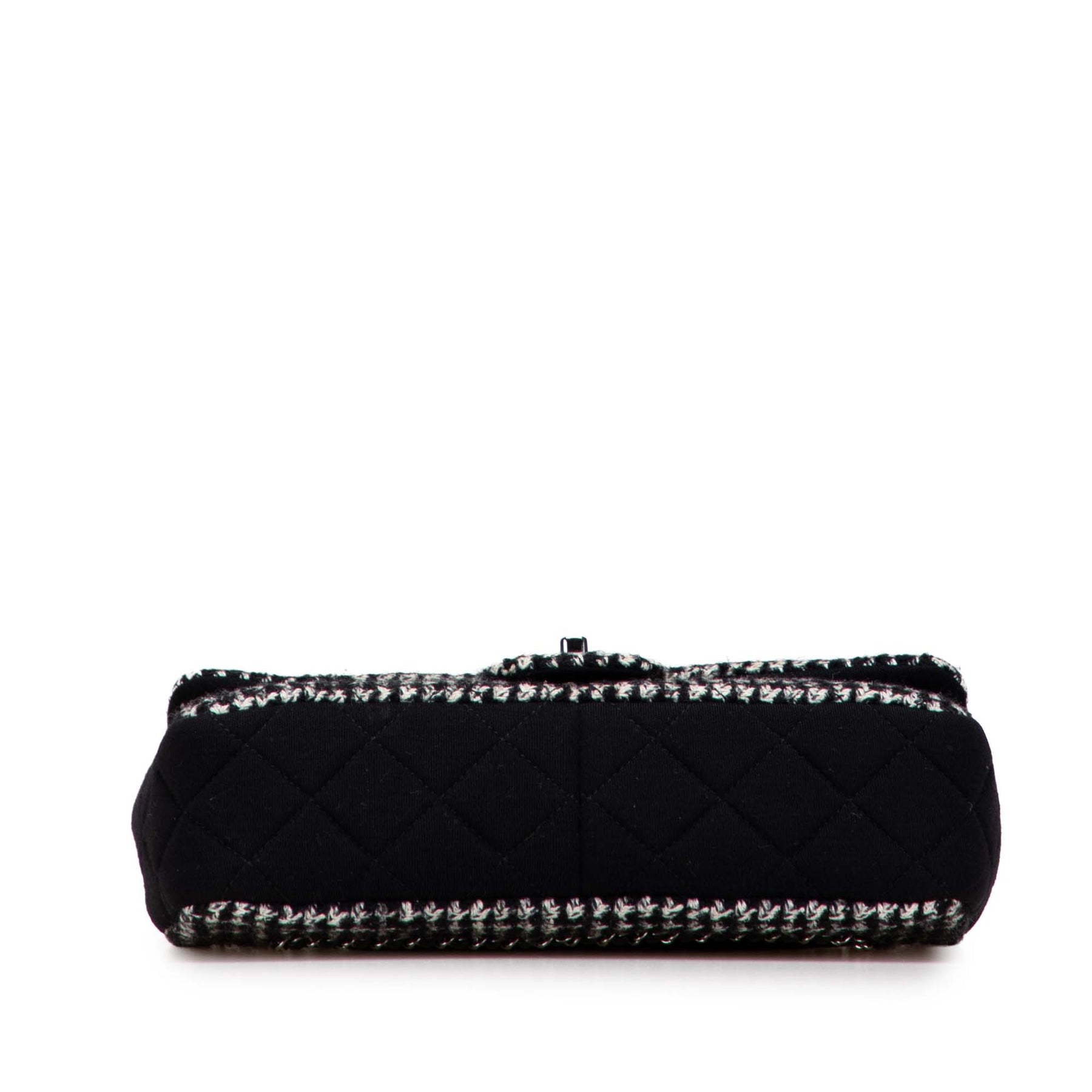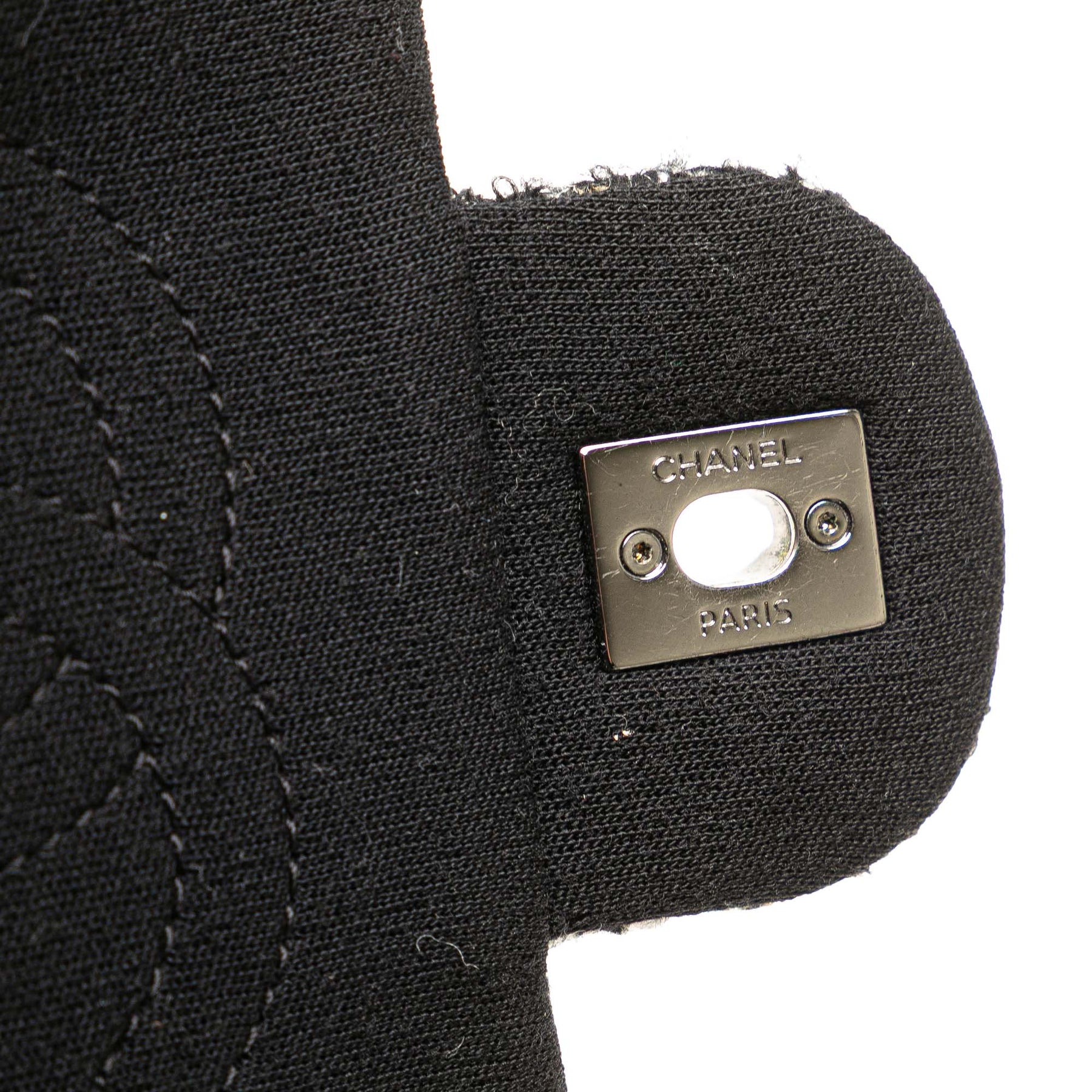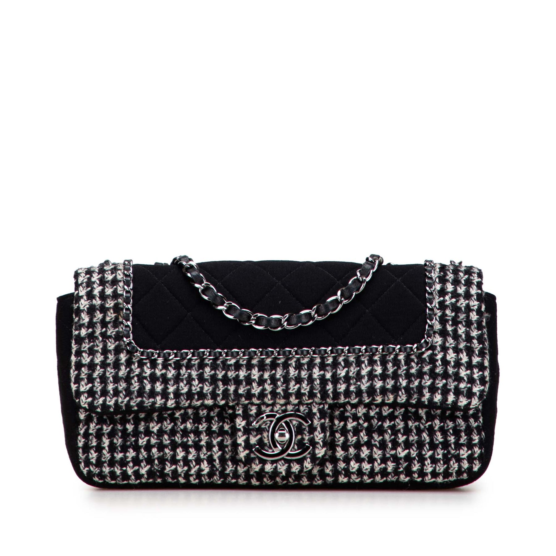 Ce sac bandoulière est doté d'un corps en tweed et jersey, de détails en chaîne de cuir tressée, de bandoulières en chaîne de cuir tressée, d'un rabat avec fermoir à tourniquet CC, ainsi que de poches intérieures zippées et plaquées. Il est en bon état.