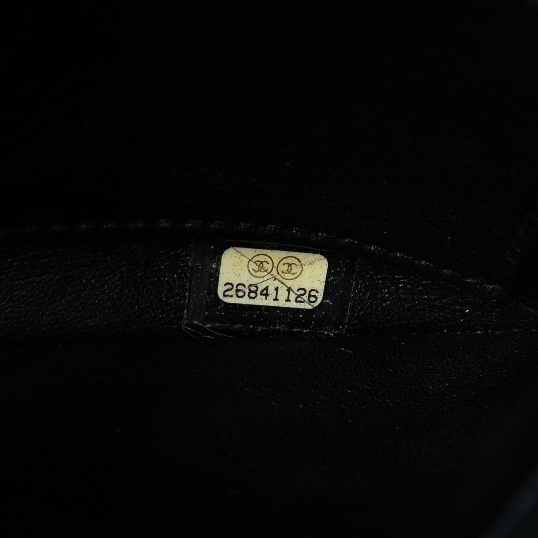Le sac Trendy CC est confectionné en cuir d'agneau et présente une poignée plate en cuir, une bandoulière amovible en chaîne tressée avec protection en cuir, un rabat avant avec fermoir CC, une poche plaquée extérieure au dos, ainsi que des poches intérieures zippées et plaquées. Il est en bon état.