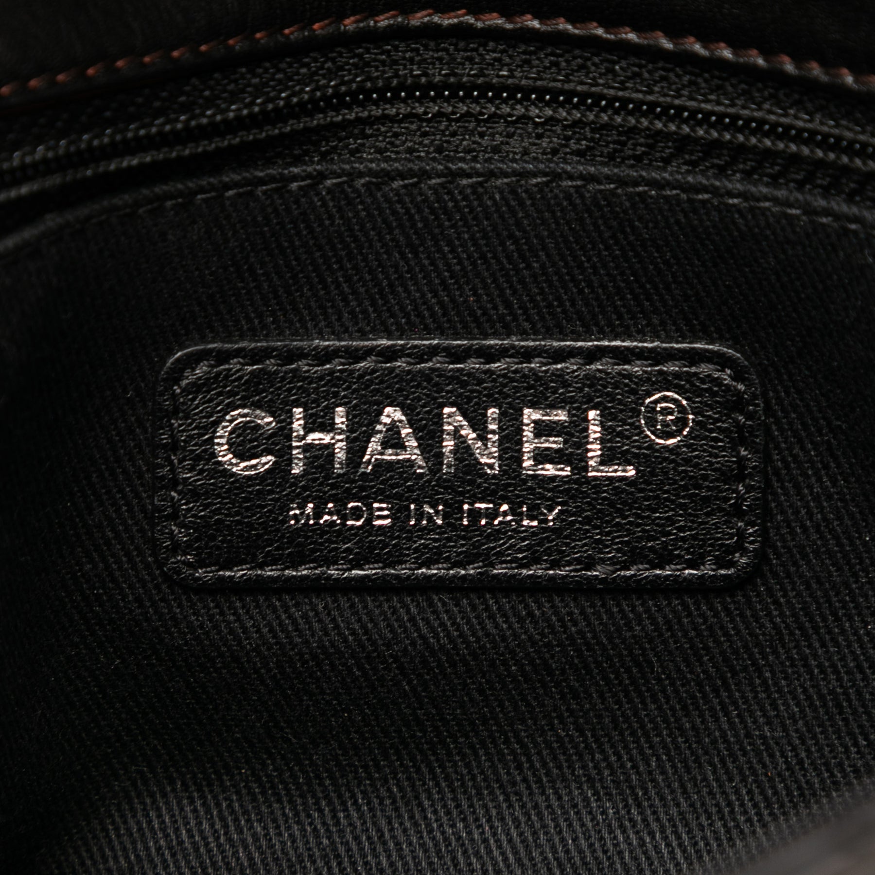 Ce sac bandoulière est doté d'un corps en cuir verni matelassé, d'une bandoulière chaîne en cuir tressé avec protection en cuir, d'un rabat supérieur avec fermoir à loquet CC, d'un compartiment intérieur zippé et d'une poche intérieure zippée. Il est en bon état.
