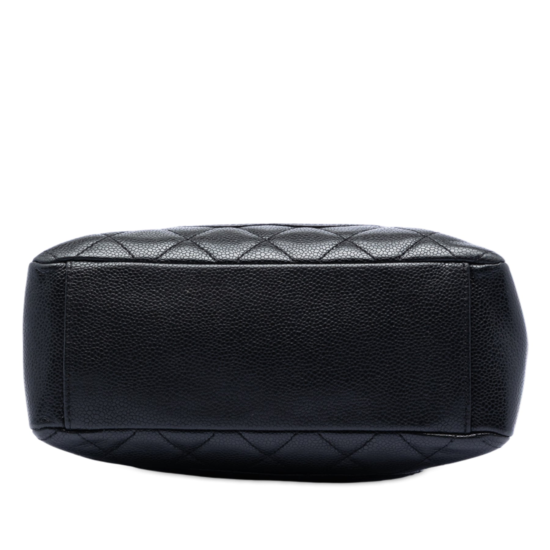 Le petit cabas est confectionné en cuir caviar et possède des bandoulières en chaîne tressée avec protection en cuir, une ouverture sur le dessus avec fermeture magnétique, une poche plaquée extérieure au dos, ainsi que des poches intérieures zippées et plaquées. Il est en bon état.