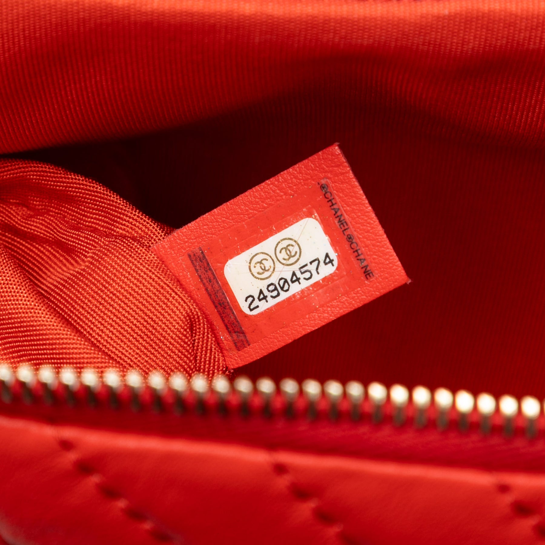 Cette pochette est en cuir matelassé et possède un rabat zippé. Elle est en excellent état.
