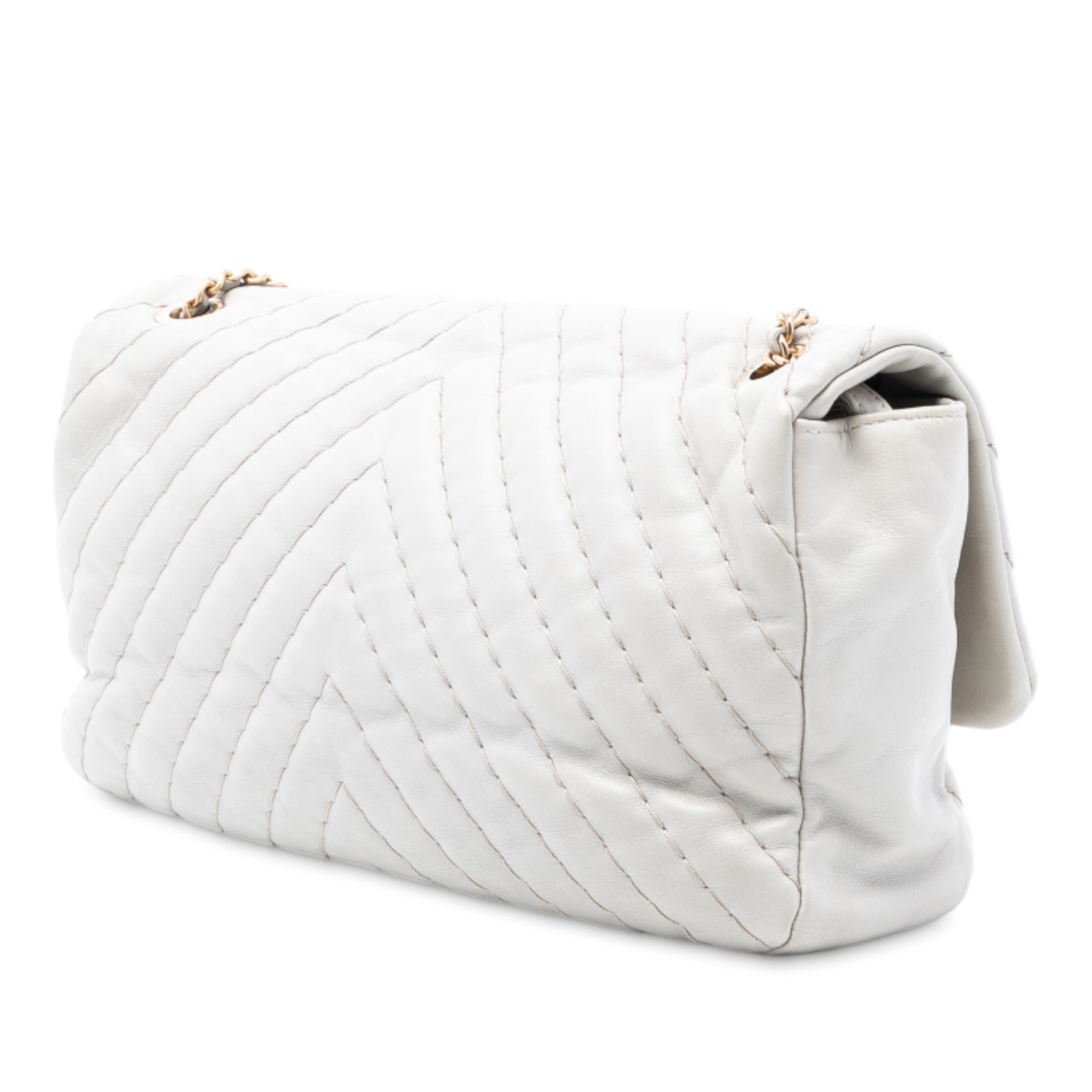 Ce sac bandoulière est en cuir matelassé, avec une bandoulière chaîne dorée protégée par du cuir, un rabat avant orné du double C et d'une fermeture à tourniquet, ainsi qu'une poche intérieure zippée. Il est en bon état.