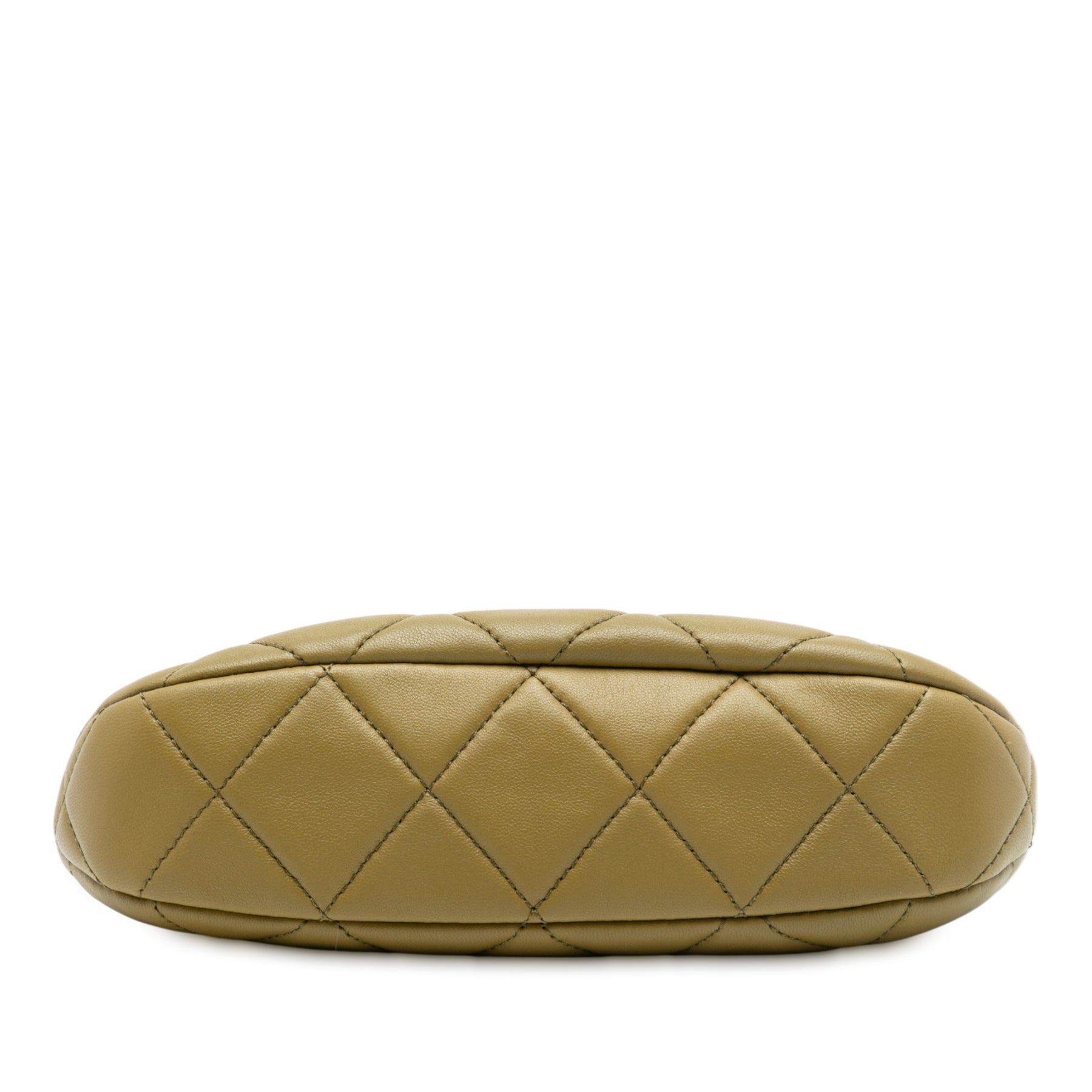 Ce sac hobo est confectionné en cuir d'agneau matelassé et possède une bandoulière chaîne, une fermeture zippée sur le dessus et une poche intérieure plaquée. Il est en excellent état.