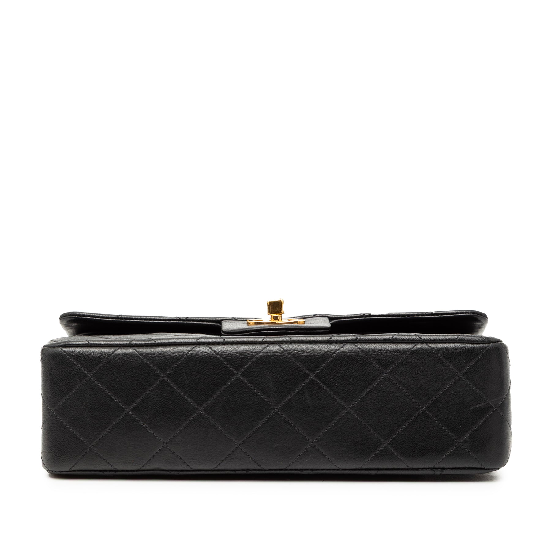 Ce sac bandoulière est confectionné en cuir d'agneau matelassé et possède une bandoulière en chaîne tressée de cuir, un double rabat avant orné du double C entrelacé et d'une fermeture à tourniquet, une poche plaquée extérieure au dos et des poches plaquées intérieures. Il est en bon état.