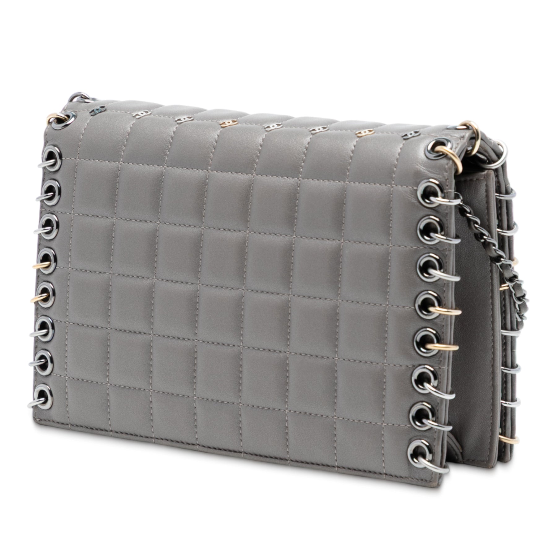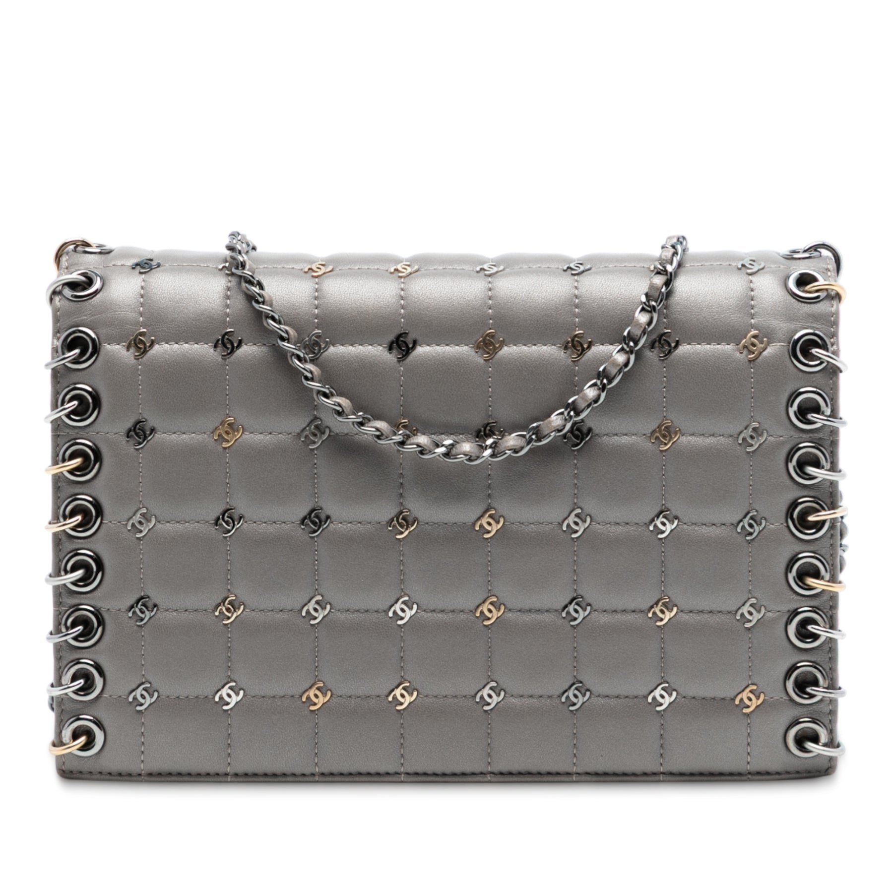 Chanel Small Cuir d’agneau Chocolate Bar CC Piercing clouté Chain à rabat