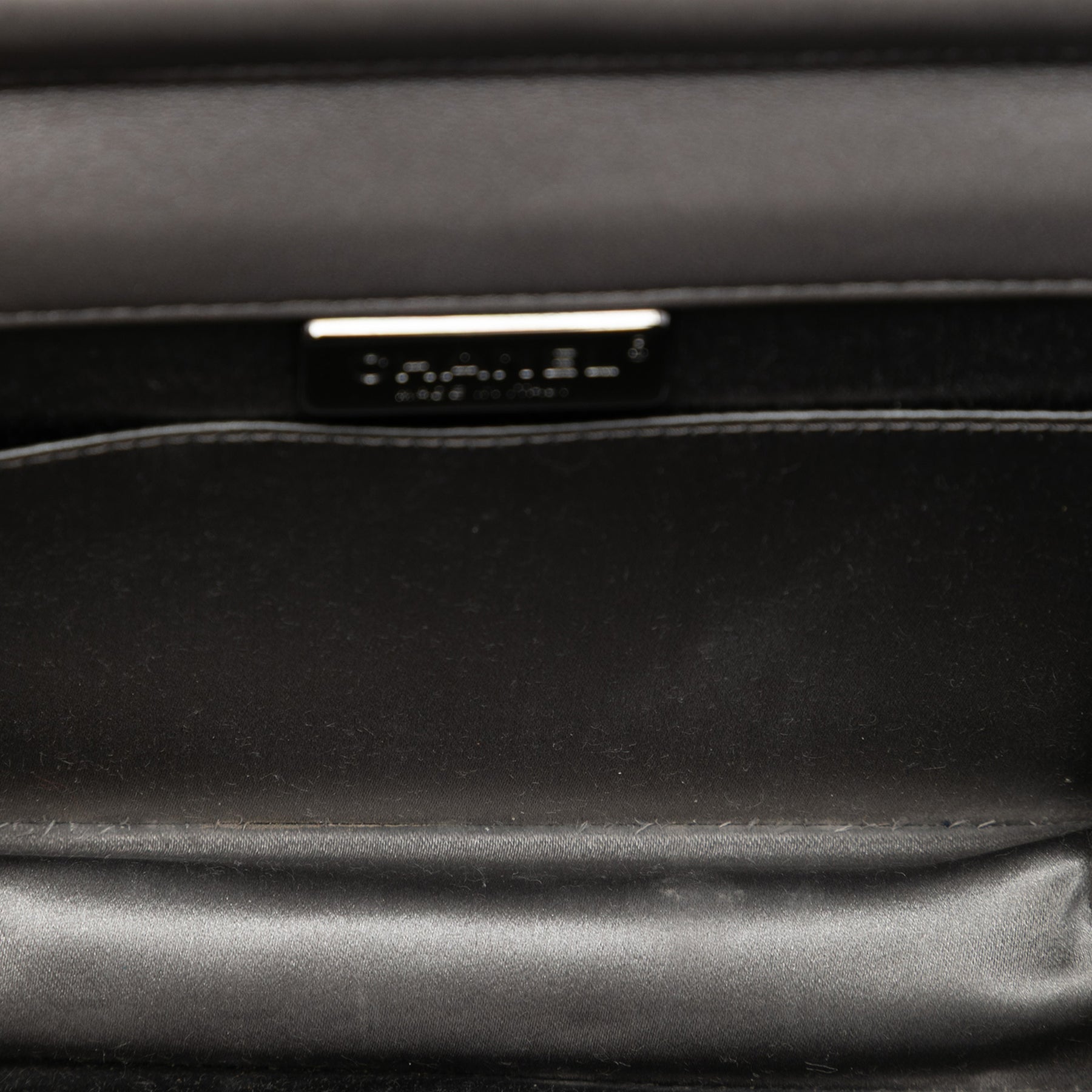 Ce sac à rabat est confectionné en cuir d'agneau matelassé orné de clous et d'œillets, et possède des lanières en chaîne tressée de cuir, un rabat avant à fermeture pression et une poche intérieure plaquée. Il est en excellent état.