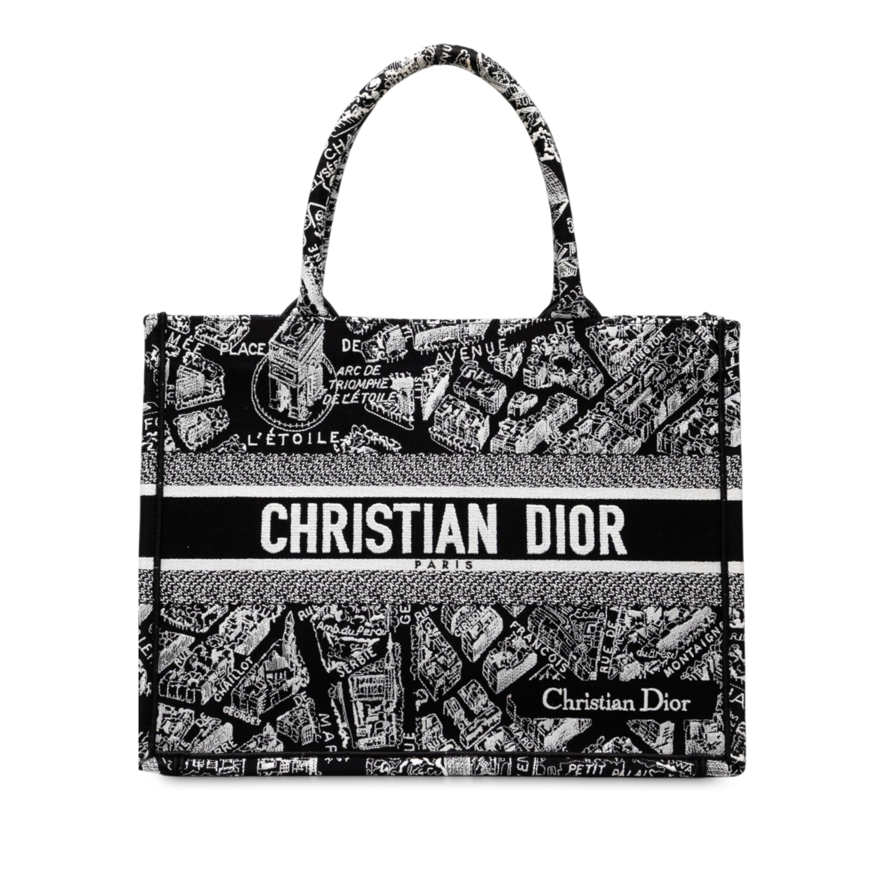 Dior Medium Toile Embroidered Plan De Paris Book Cabas Noir