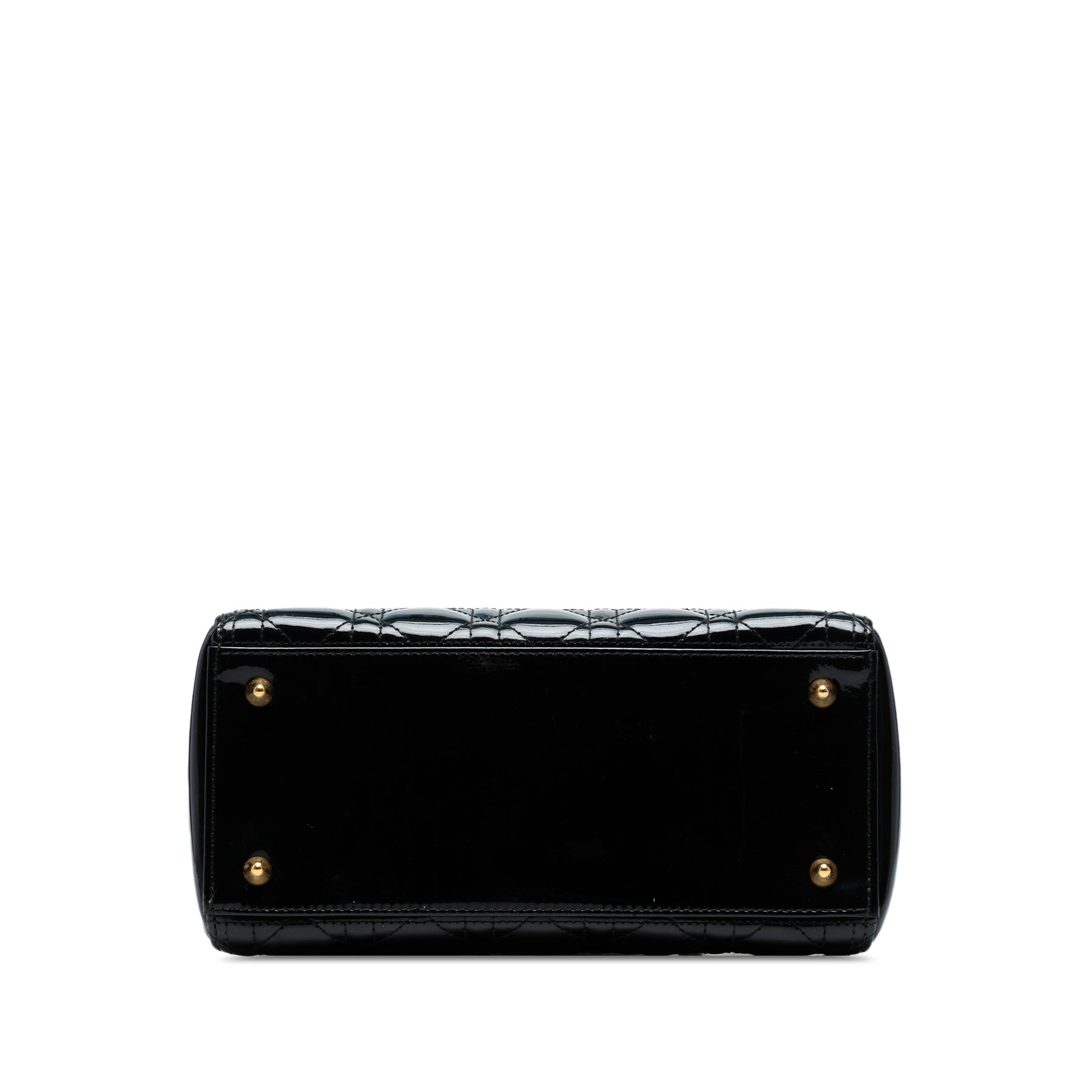 Le sac Lady Dior est confectionné en cuir verni matelassé et possède des anses plates en cuir, une fermeture zippée sur le dessus et une poche intérieure zippée. Il est en bon état.