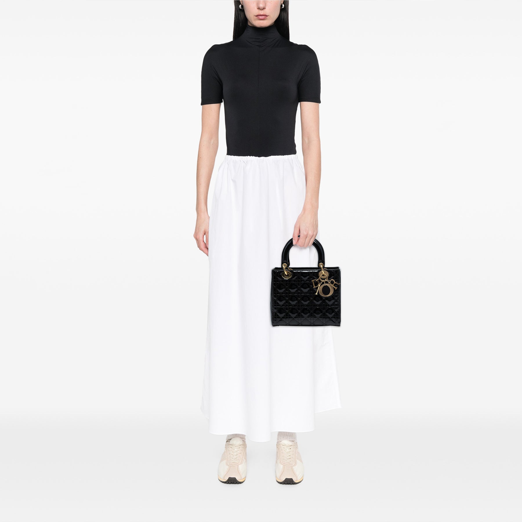 Dior Medium Cuir verni Cannage Lady Dior Noir