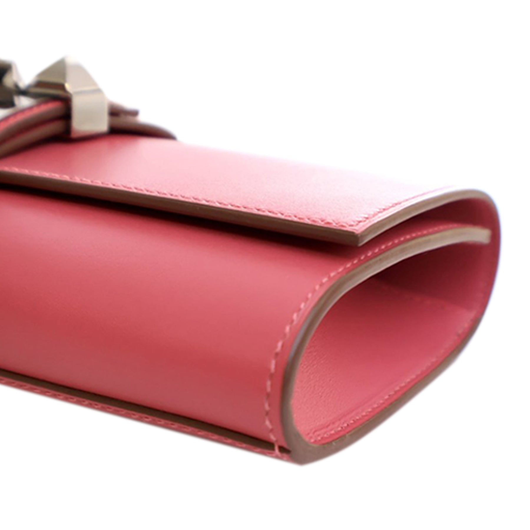 Cette pochette Medor est confectionnée en cuir Tadelakt couleur Rose Lipstick, avec un rabat avant à fermeture métallique et une poche intérieure plaquée. Elle est en excellent état.