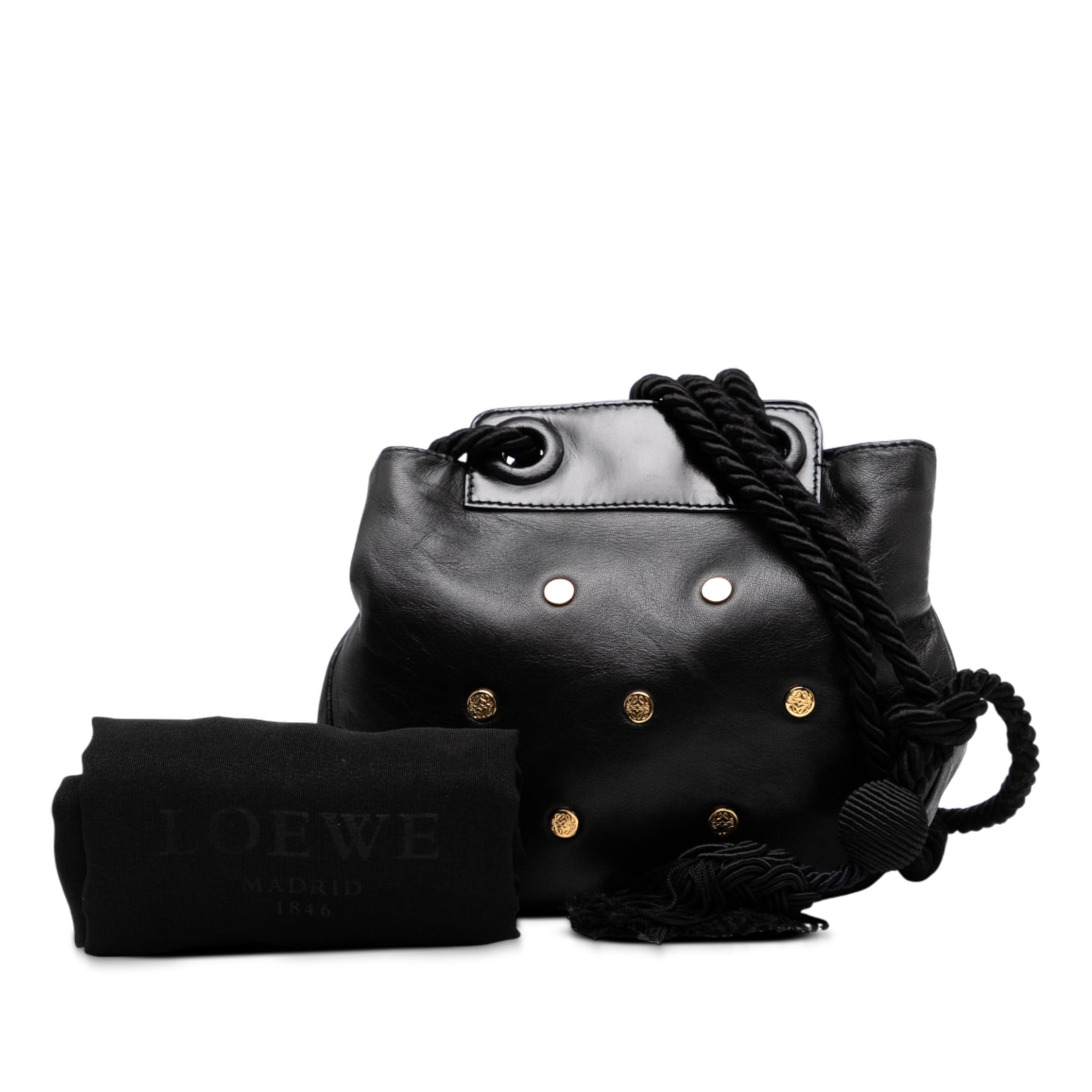 LOEWE Studded Cuir Drawstring Sac porté croisé Noir