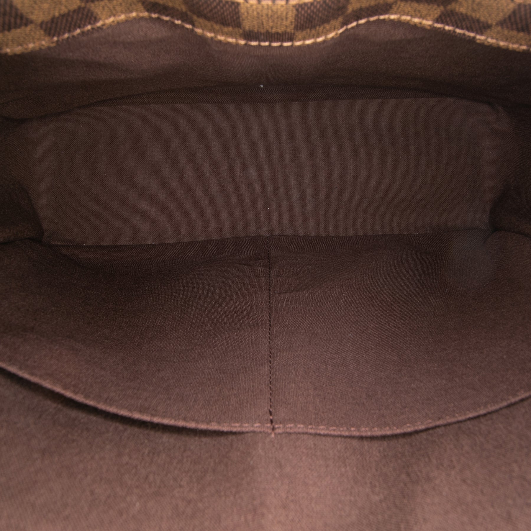 Le sac Broadway est confectionné en toile Damier Ébène et présente une poignée supérieure plate en cuir, une bandoulière plate réglable en toile, un rabat avant à fermeture magnétique, des poches extérieures ouvertes à l'avant et des poches intérieures plaquées. Il est en bon état.