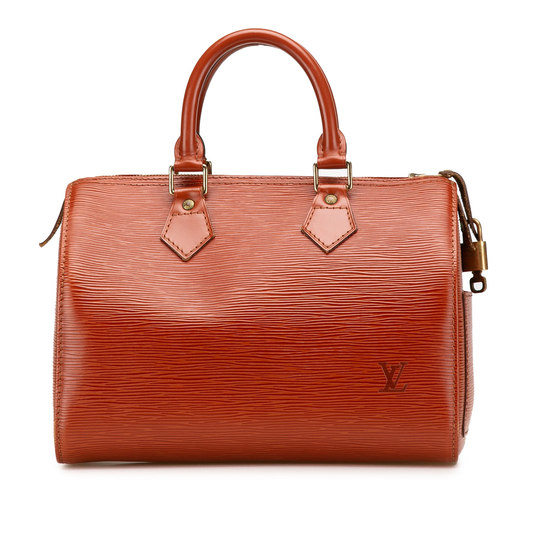 Le Speedy 25 est doté d'un corps en cuir épi, de poignées en cuir roulé, d'une fermeture zippée sur le dessus et d'une poche intérieure. Il est en bon état.