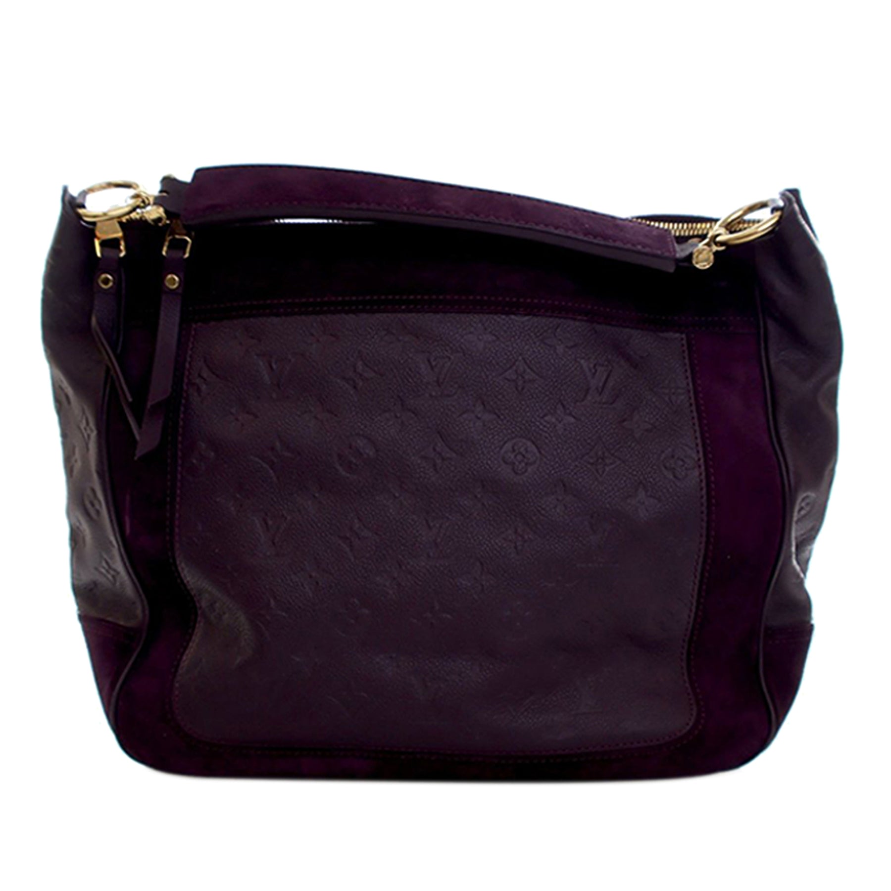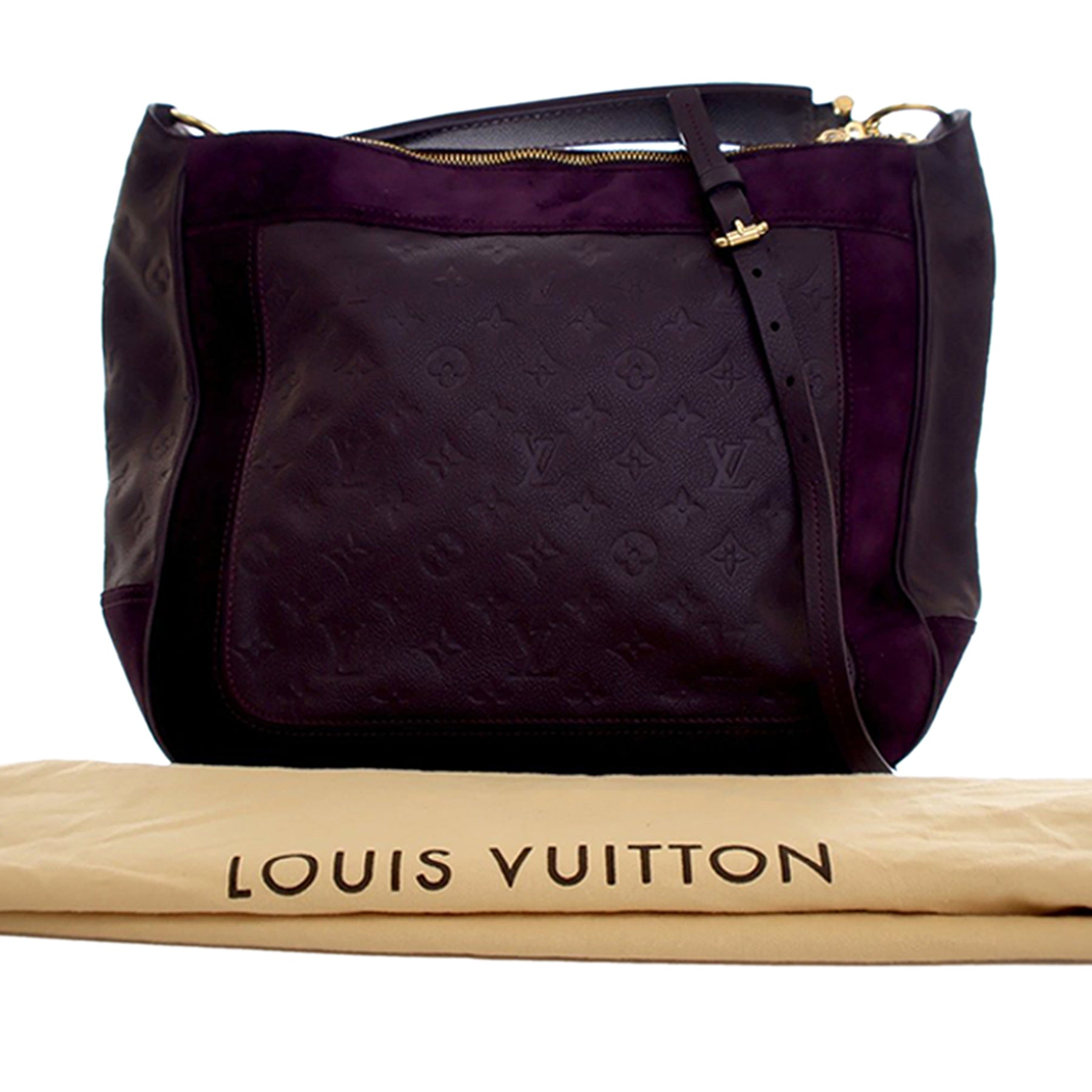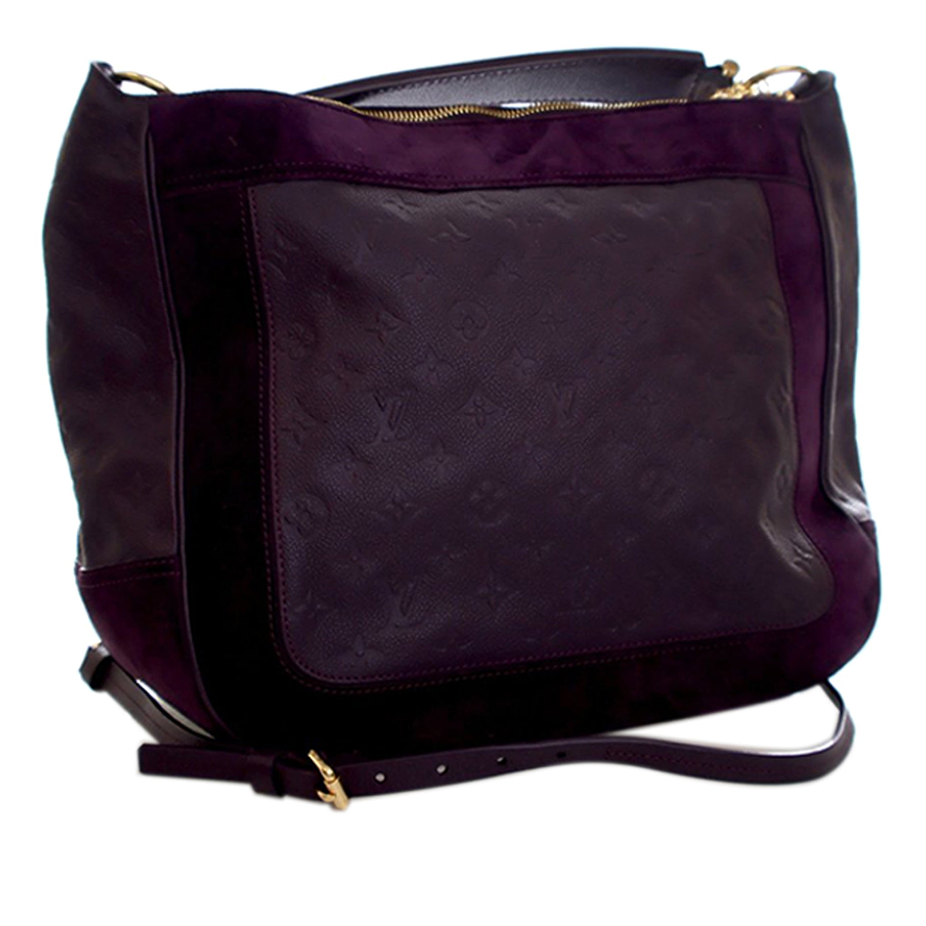 Le sac Audacieuse MM est confectionné en cuir Monogram Empreinte et daim, et présente une poignée plate, une bandoulière amovible, une fermeture zippée sur le dessus, ainsi que des poches intérieures zippées et plaquées. Il est en excellent état.