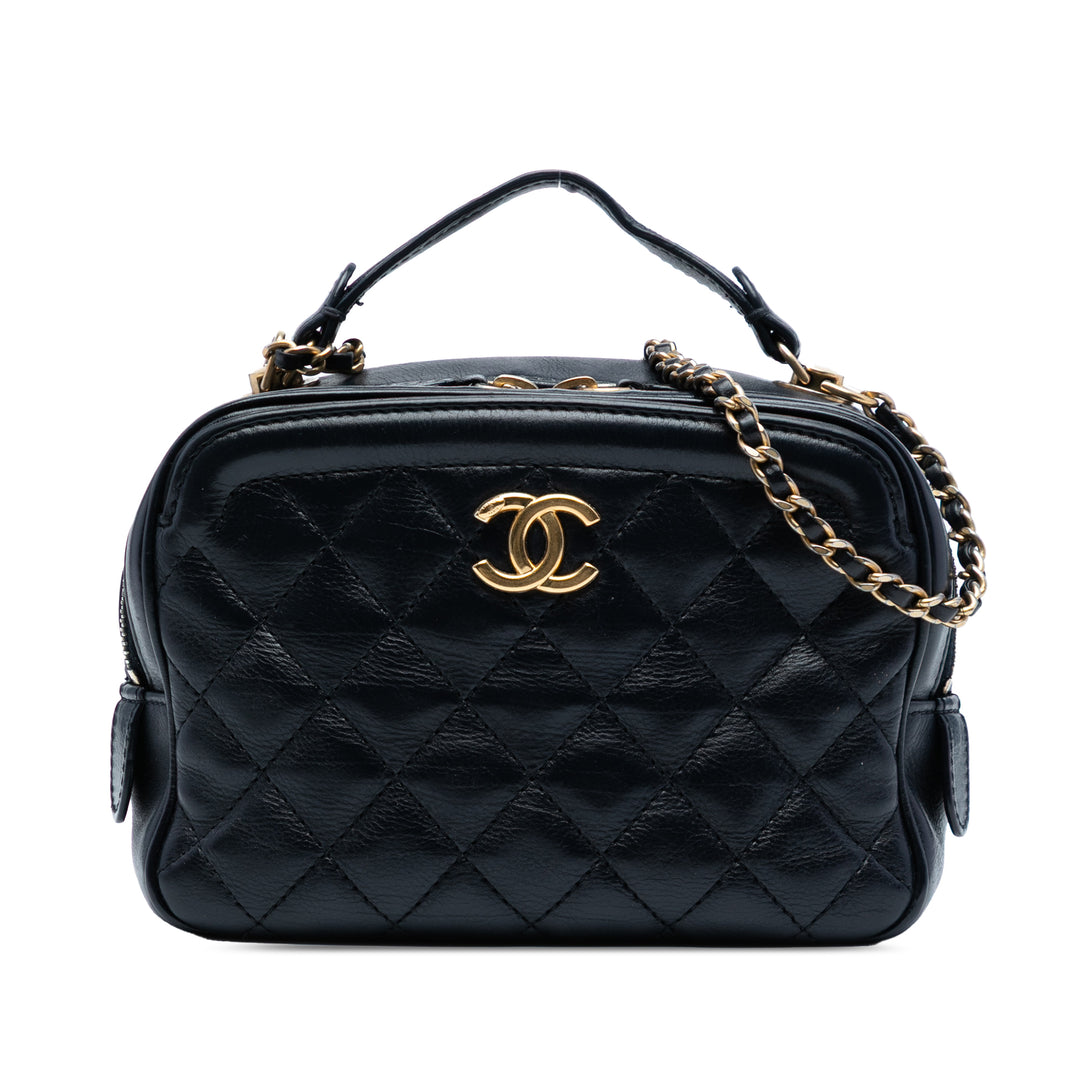Chanel Paris Rome Quilted Cuir de veau Colosseum Lock Frame Bowling Bag Noir