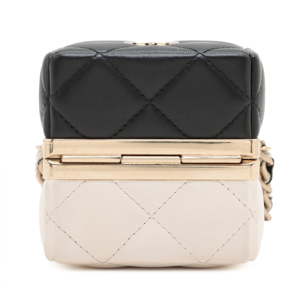 Chanel Bicolor Quilted Cuir d’agneau Cube Pochette with Chain Blanc