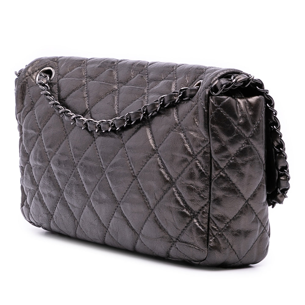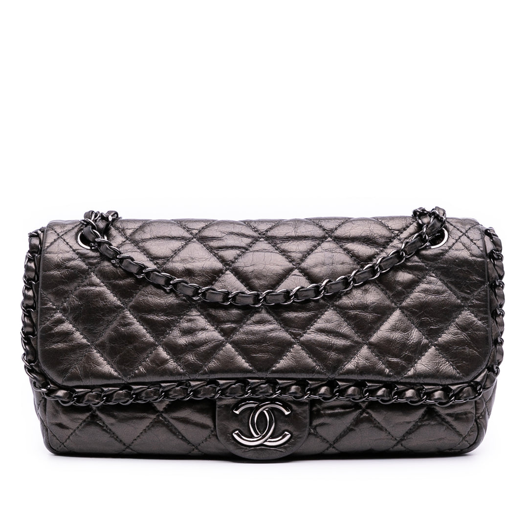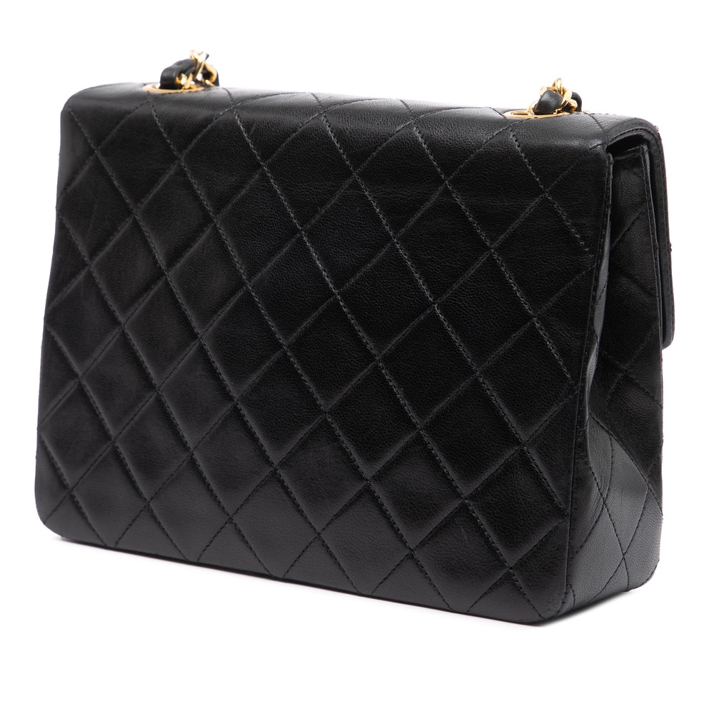 Chanel Large Quilted Sheepskin Front Chain Flap Noir