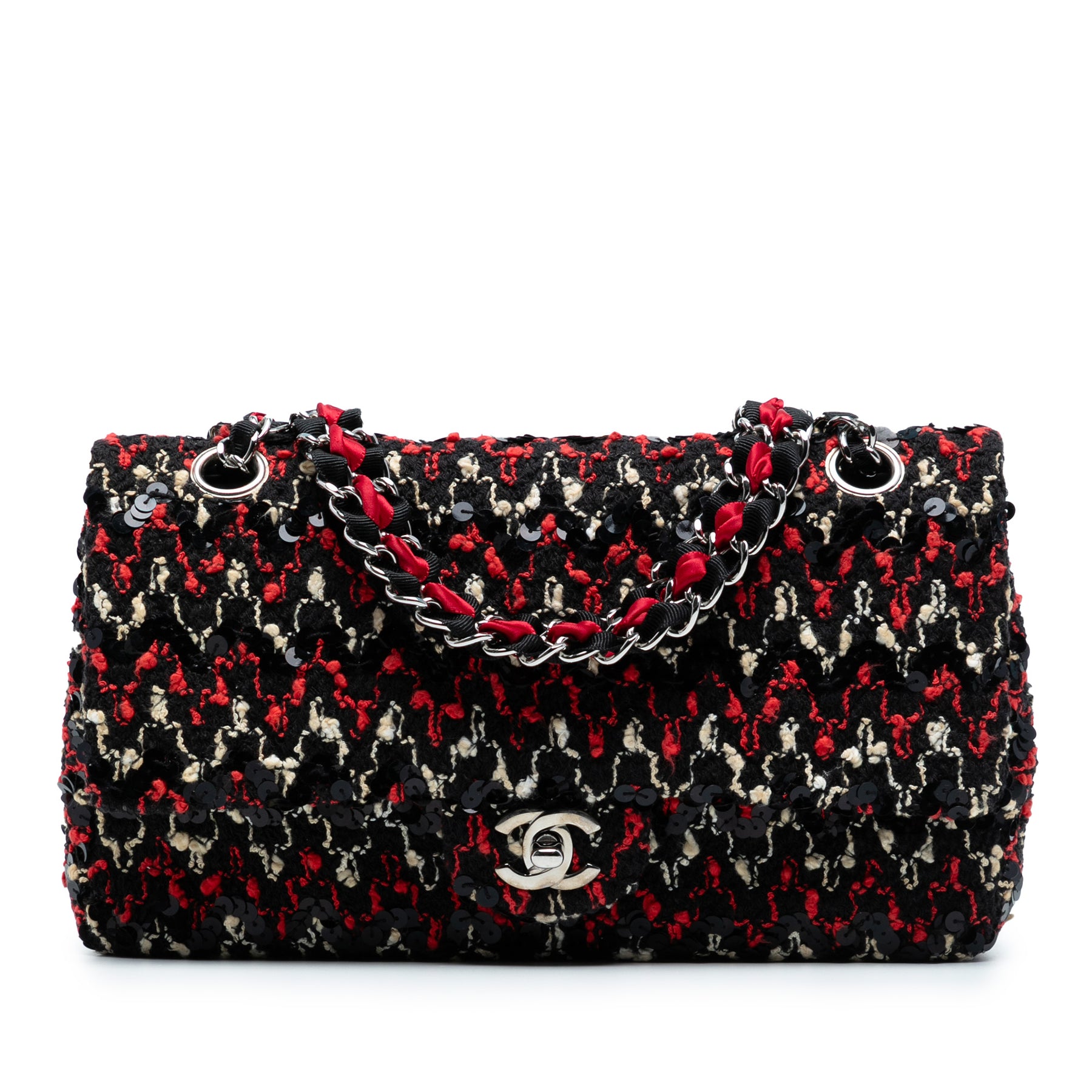 Chanel Medium Classic Sequinsed Tweed Double rabat Noir