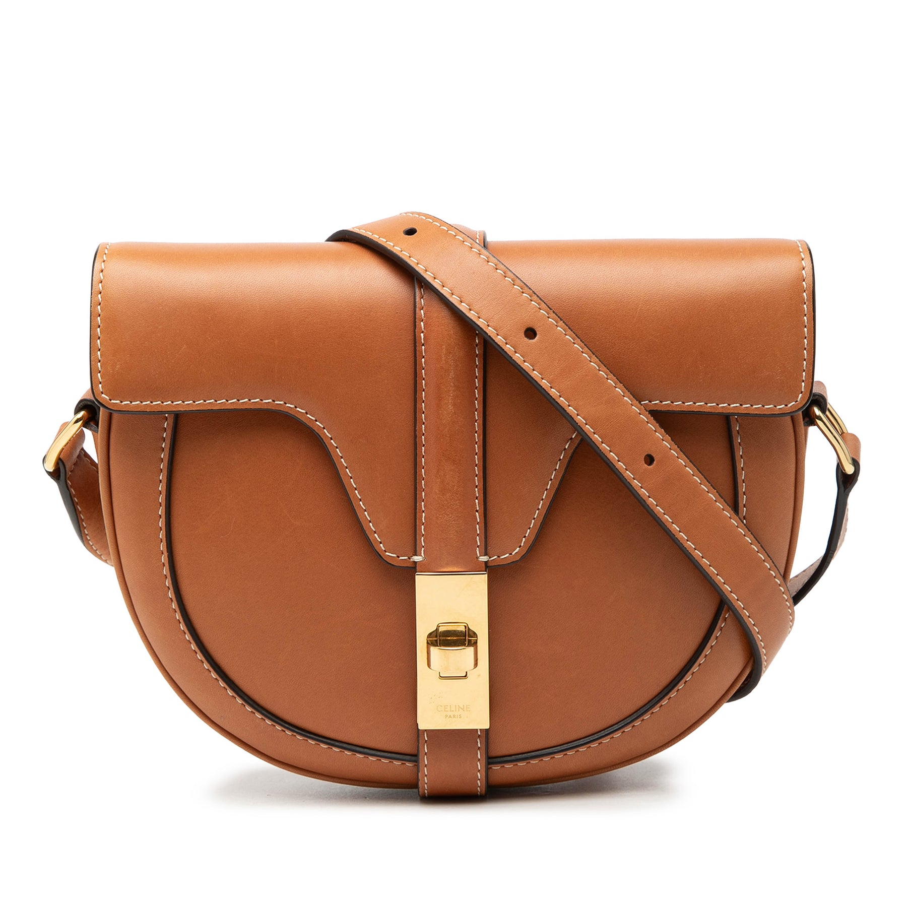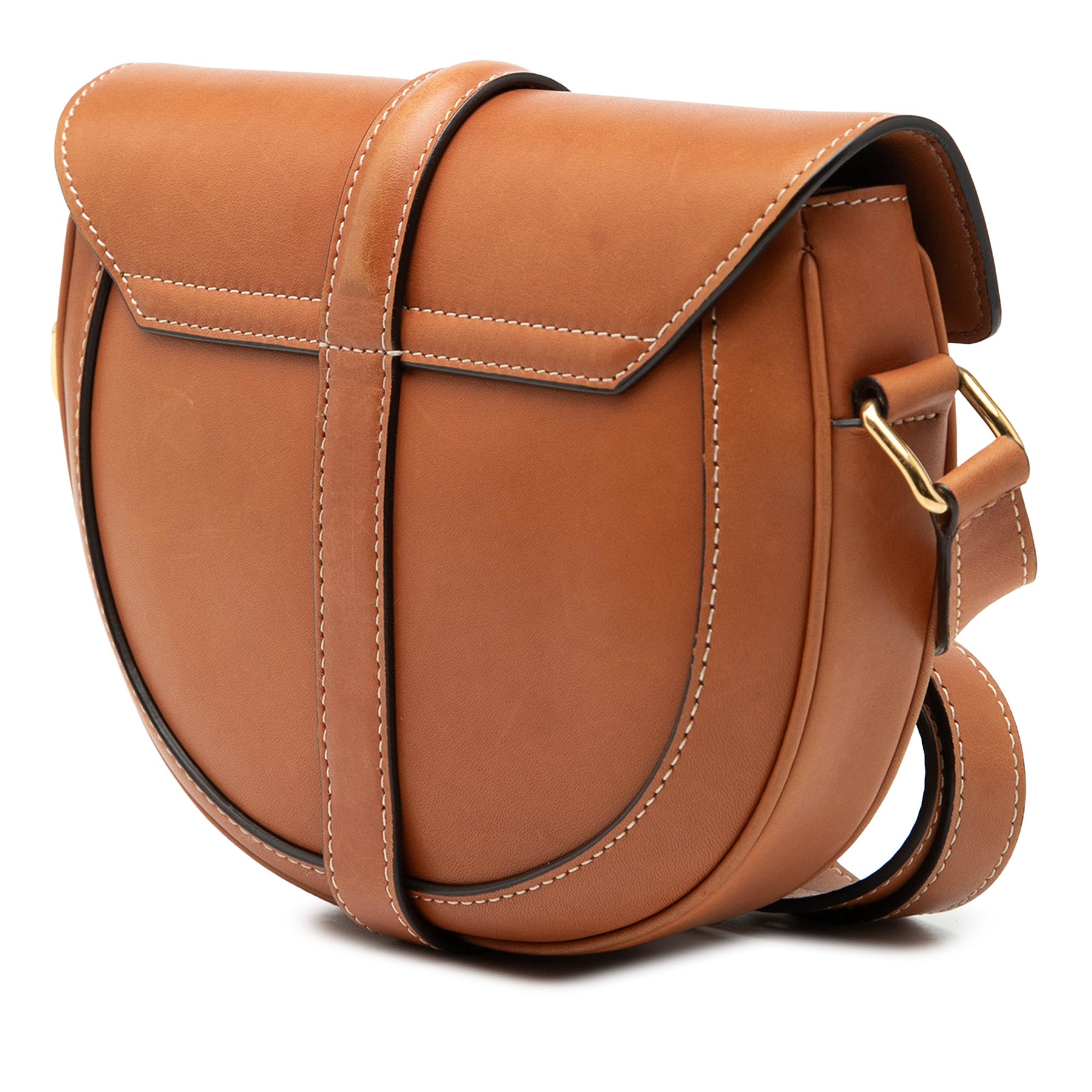 Le sac bandoulière Besace 16 est en cuir, possède une bandoulière plate réglable, un rabat avant avec fermoir tourniquet et une poche intérieure plaquée. Il est en bon état.
