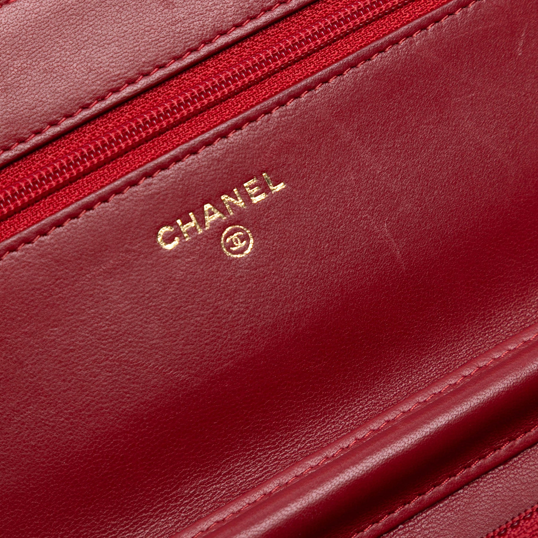 Chanel CC Stitched Cuir d’agneau Wallet On Chain Rouge