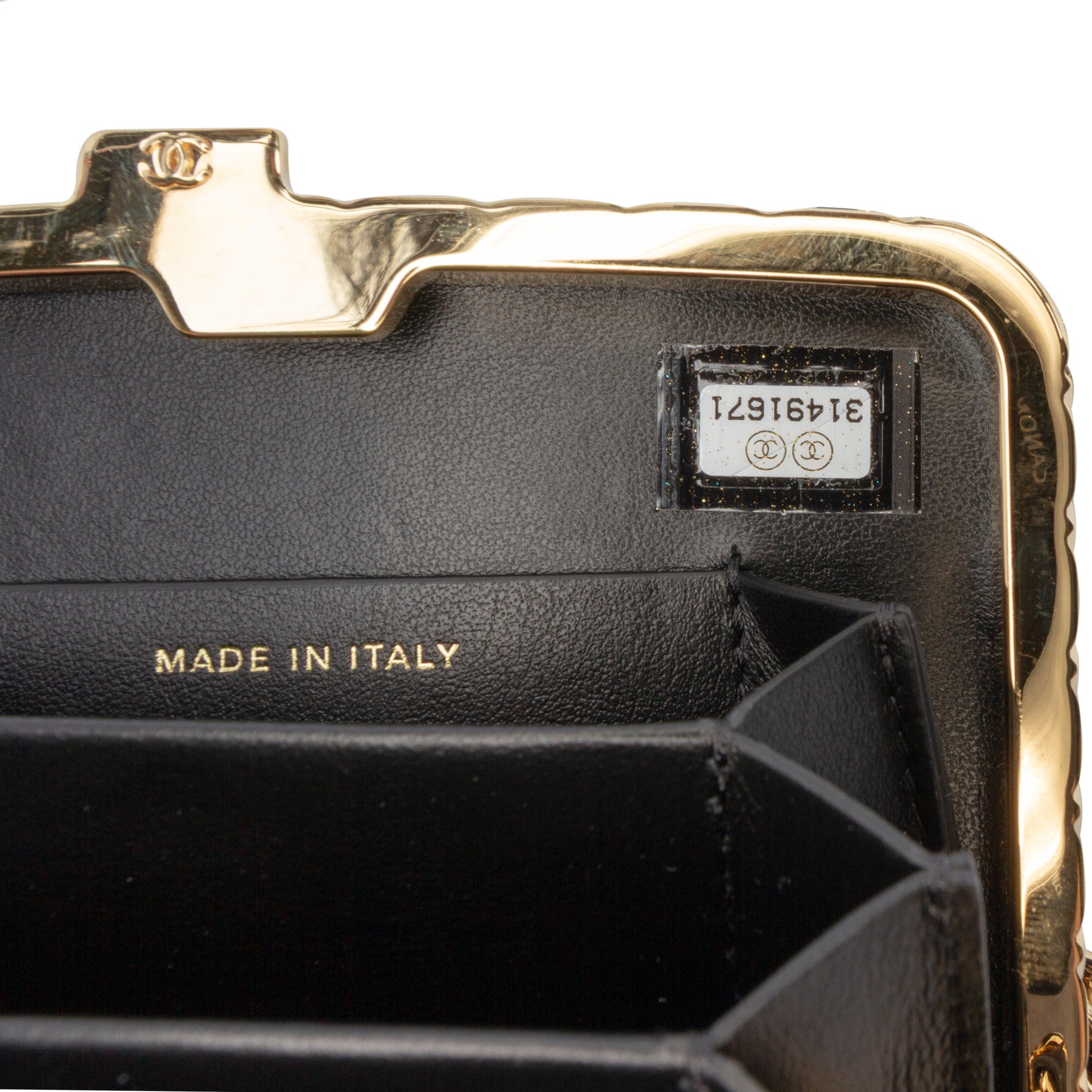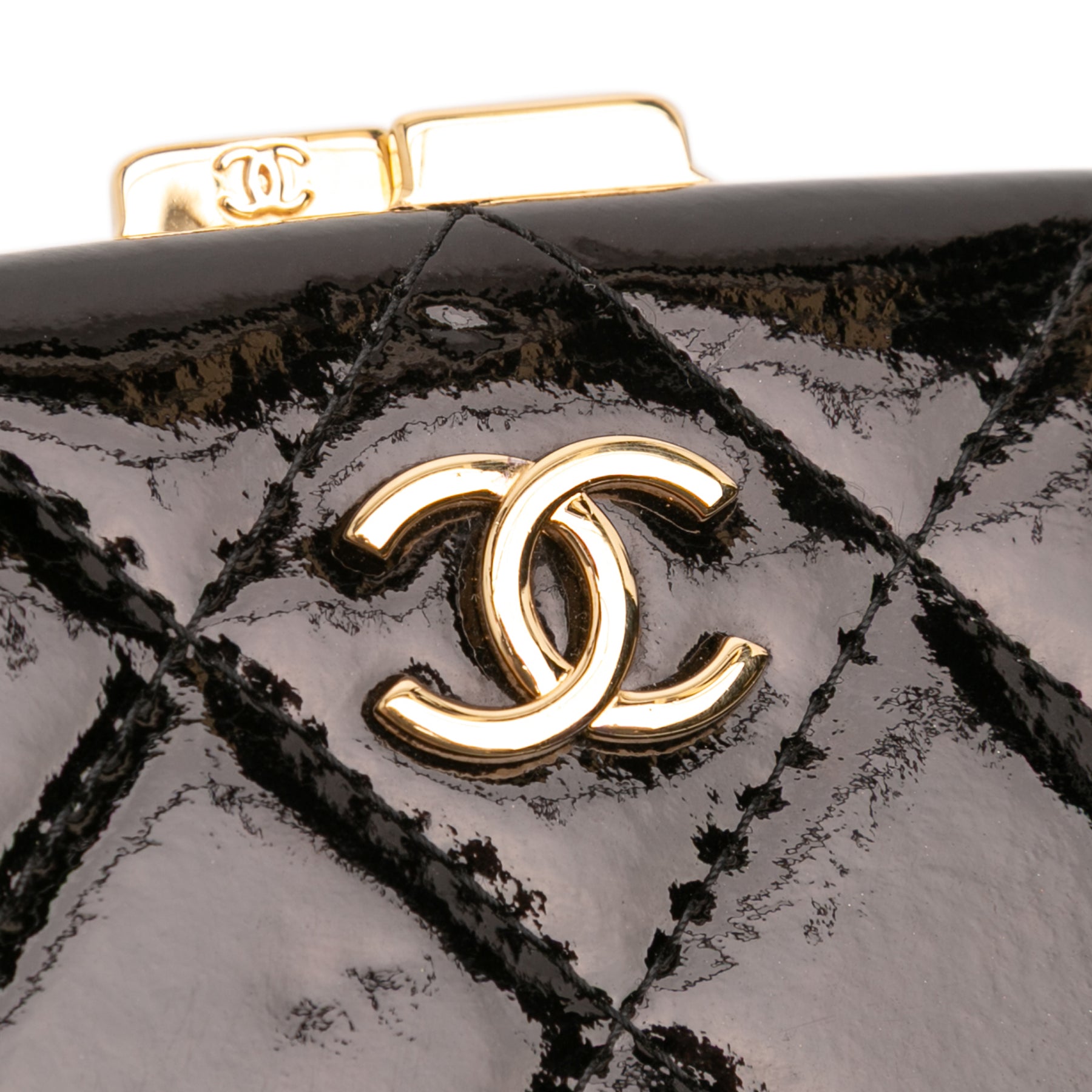 Ce sac bandoulière est doté d'un corps en cuir de chèvre verni et en métal, d'une bandoulière en cuir tressé et d'un fermoir à fermoir. Il est en excellent état.