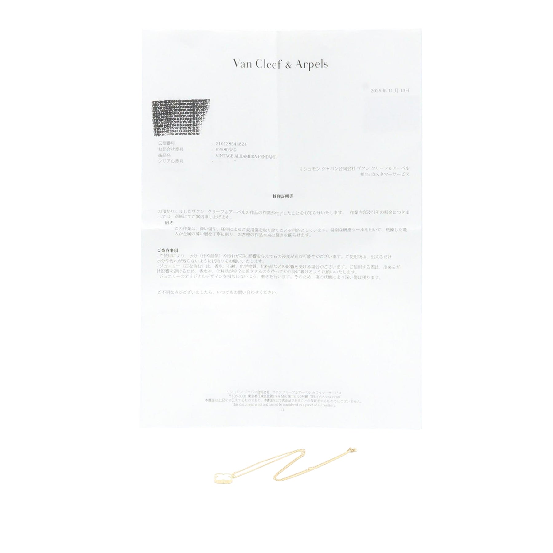 Ce collier est composé d'un corps en or jaune 18 carats, d'un pendentif orné de nacre et d'un fermoir mousqueton. Il est accompagné d'un certificat de réparation. Dimensions du motif : 1,50 cm de large x 1,50 cm de haut. Il est en excellent état.