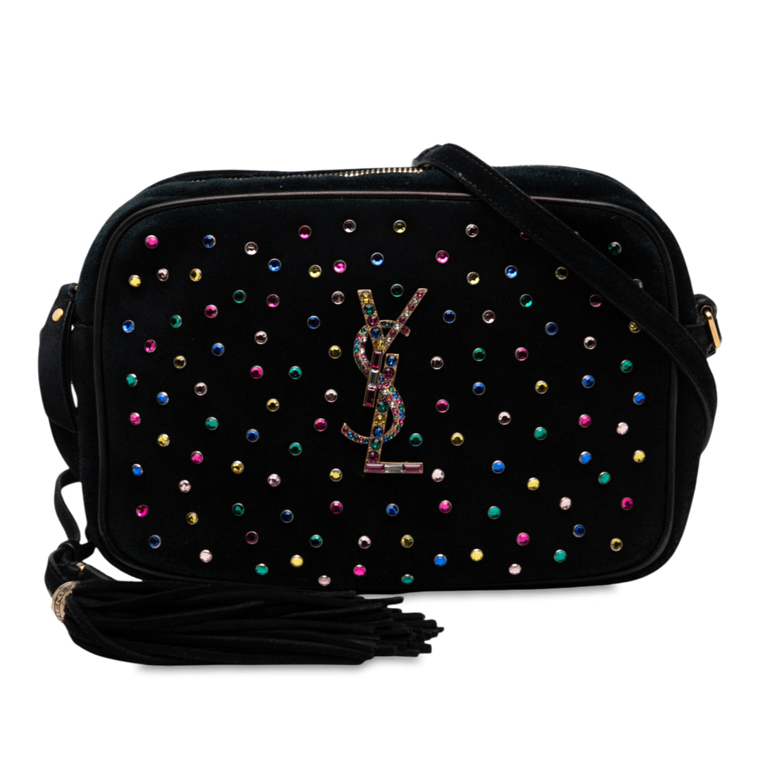 Saint Laurent Daim Crystal Monogram Lou Sac caméra Noir
