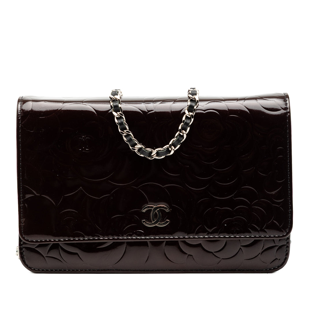 Chanel CC embossé Cuir verni Camellia Wallet on Chain
